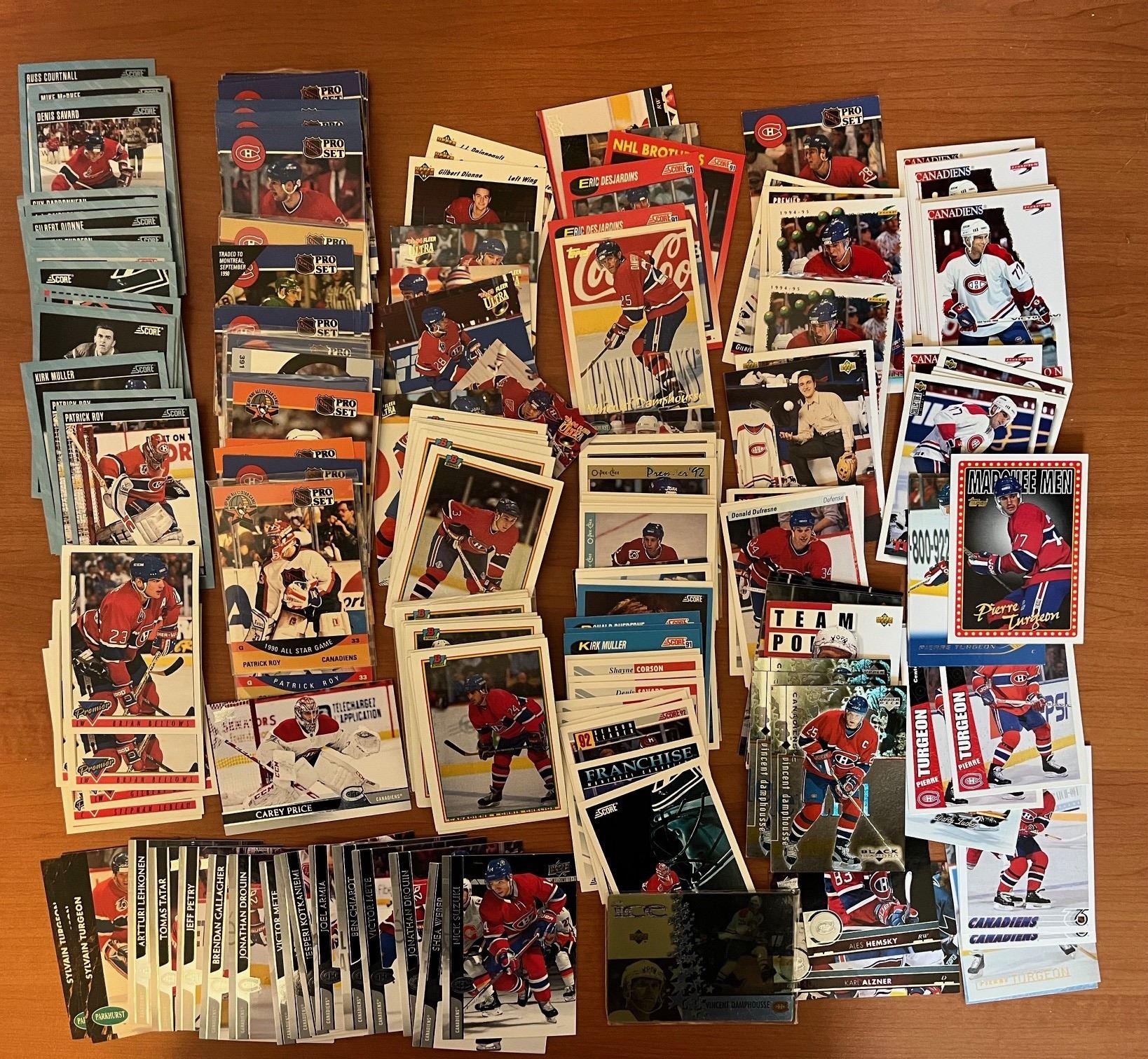 Montreal Canadians hockey card lot. 200 count box. Mixed Brands. Mixed Years. Carey Price. Patrick Roy.