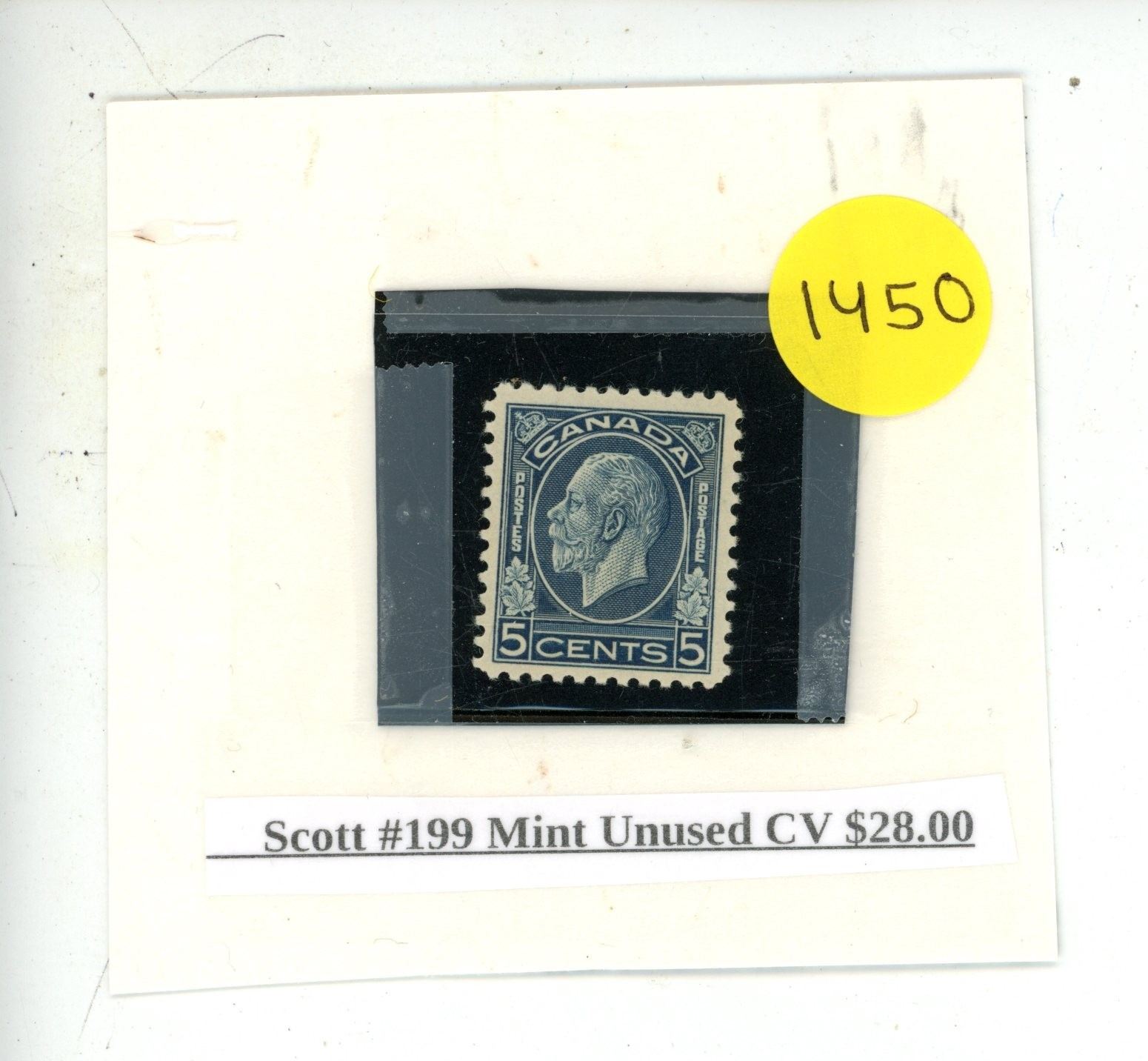 Lot 1450 Scott #199 Mint Unused CV $28.00.