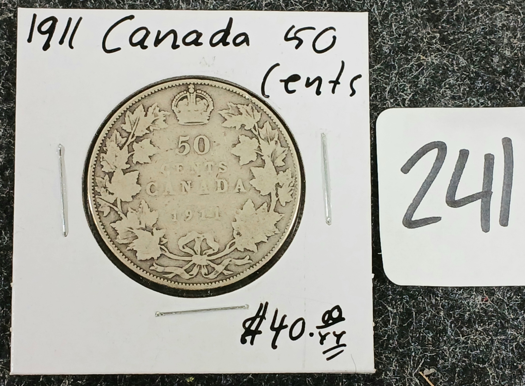 Lot 241 1911 CDN 50 CENT SILVER COIN