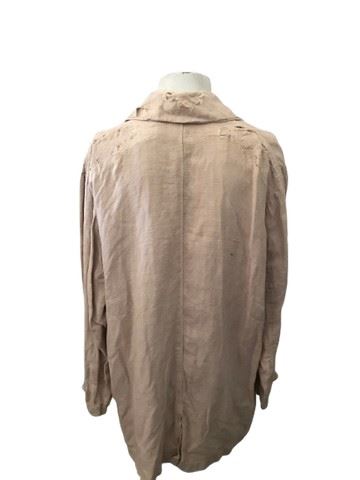 Vintage duster jacket from Western Costume Company with a sewn in label. There are tears along the back and the cuffs.