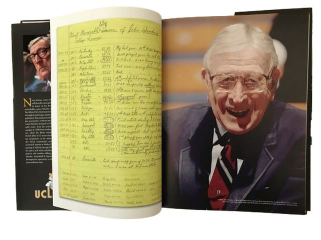 Wooden -Basketball and Beyond book - the official retrospective hardcover book written by Hoffer head coach. The first page includes a copy of the original typed practice note of bullet points that he wrote to his team.