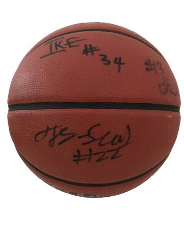 NCAA Wilson composite leather game ball signed by UCLA Bruins players Ikenna Okwarabizie, Lonzo Ball, TJ leaf, plus #13 “Shea”. Lonzo Anderson Ball (born October 27, 1997) is an American professional basketball player for the Chicago Bulls of the National Basketball Association (NBA). A point guard, he played college basketball for one season with the UCLA Bruins, earning consensus first-team All-American honors before the Los Angeles Lakers selected him with the second overall pick of the 2017 NBA draft. He was named to the NBA All-Rookie Second Team in 2018. Ikenna Okwarabizie is a basketball player born on May 06, 1995. His height is six foot ten (2m07 / 6-10). He is a center who most recently played for UCLA Bruins in NCAA. Ty Jacob Leaf (born April 30, 1997) is an Israeli-American professional basketball player for the Beijing Ducks of the Chinese Basketball Association (CBA). After playing one season of college basketball for the UCLA Bruins, he was selected by the Indiana Pacers in the first round of the 2017 NBA draft with the 18th overall pick.