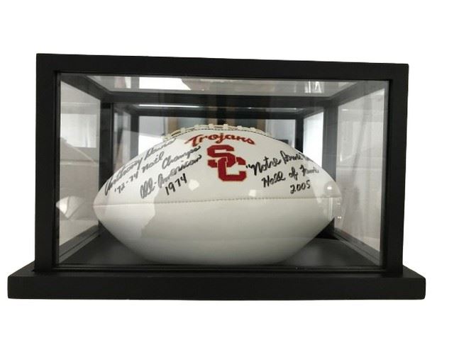 USC Trojans Baden Sports orange and white leather, autograph edition football (official size and weight) autograph by Anthony Davis 1972 to 1974 national champions All American 1974. Marked : “Notre Dame killer Hall of Fame 2005”. Anthony Davis (born September 8, 1952), also known as "A.D.", is an American former professional football player who was a running back. He played in four professional leagues: the World Football League (WFL), Canadian Football League (CFL), National Football League (NFL), and United States Football League (USFL).