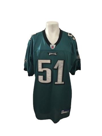 Takeo Spikes #51 Philadelphia Eagles signed Reebok football jersey size 52/XL and XL Philadelphia Eagles T-Shirt. Takeo Spikes: (December 17, 1976): American former professional football player who was a linebacker in the NFL. He played college football for Auburn Tigers. He was selected by the Cincinnati Bengals with the 13th overall pick in the 1998 NFL draft. He also played for the Buffalo Bills, Philadelphia Eagles, San Francisco 49ers, and San Diego Chargers.