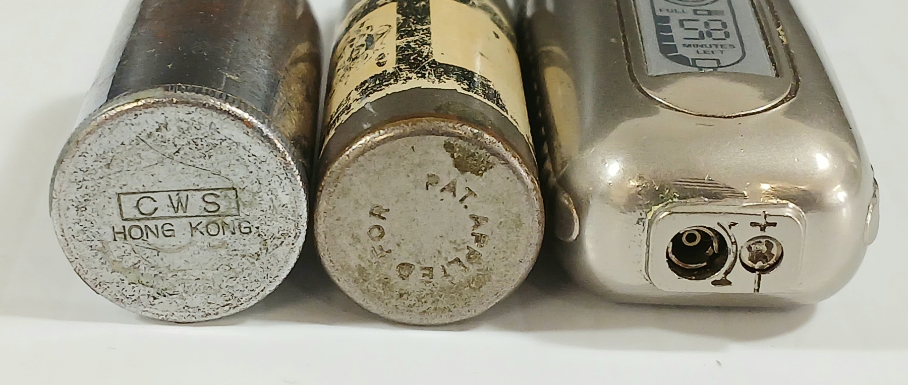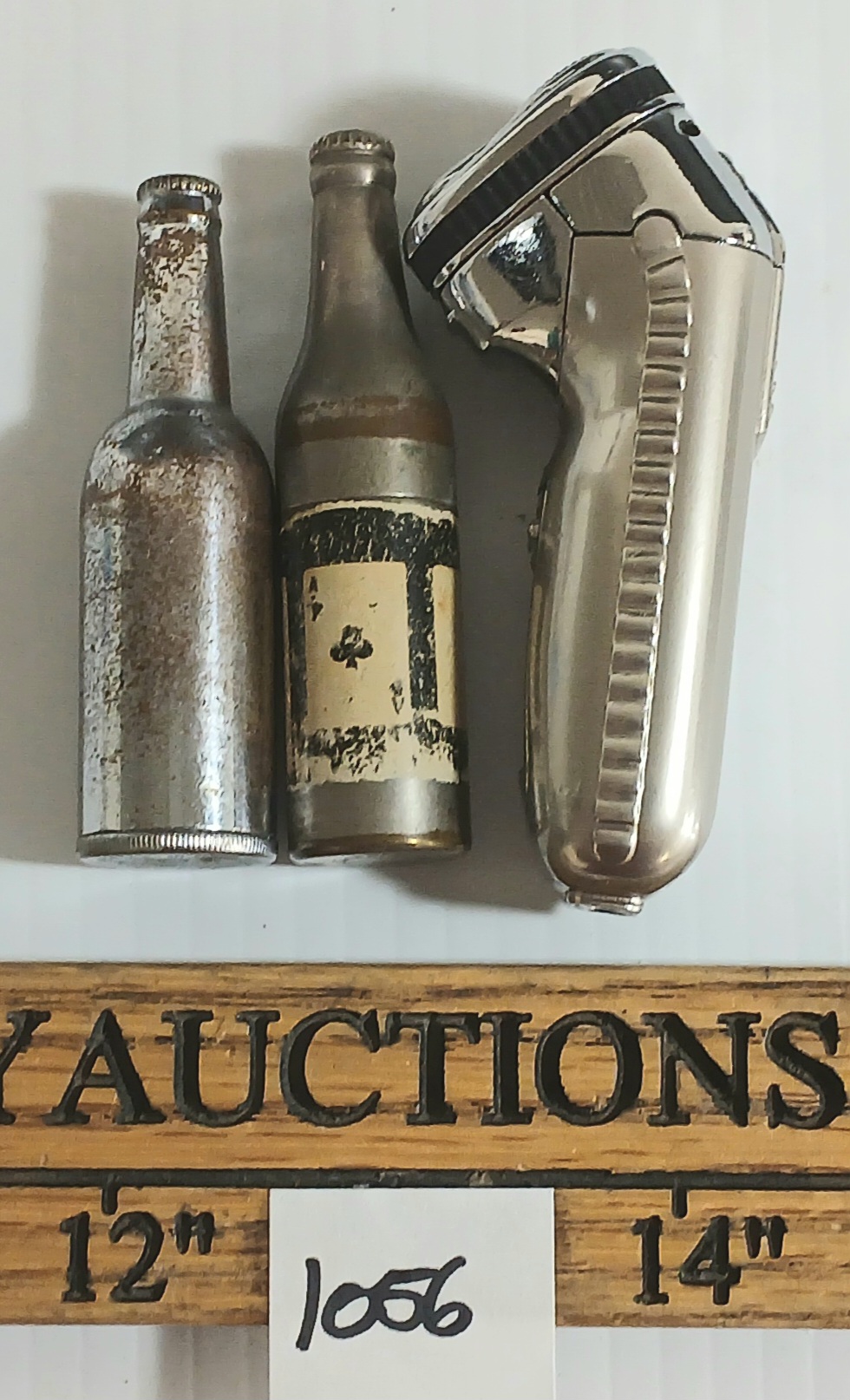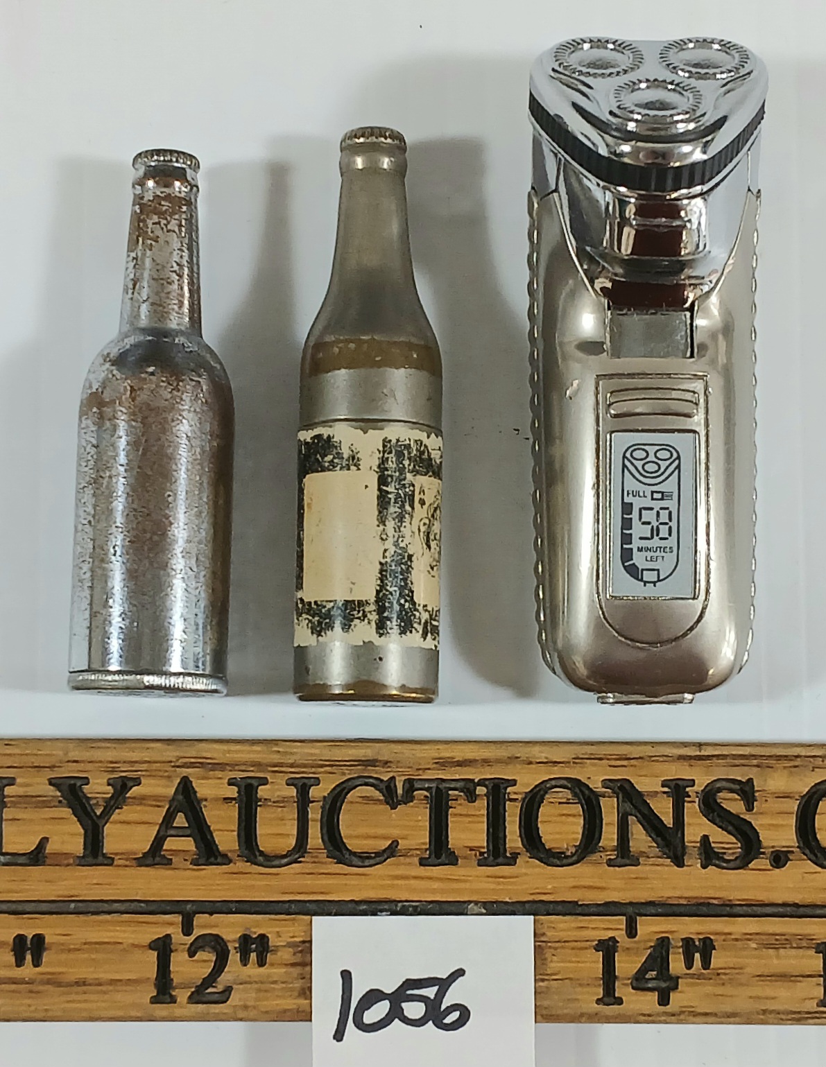 Lot 1056 LOT OF 3 - SILVER TONE BEER BOTTLES & ELECTRIC RAZOR LIGHTERS