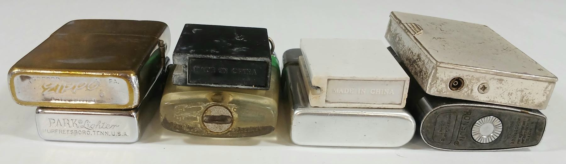 Lot 1057 LOT OF 8 - SILVER TONE LIGHTERS - INCL RONSON, PARK, VU, ZIPPO, ETC