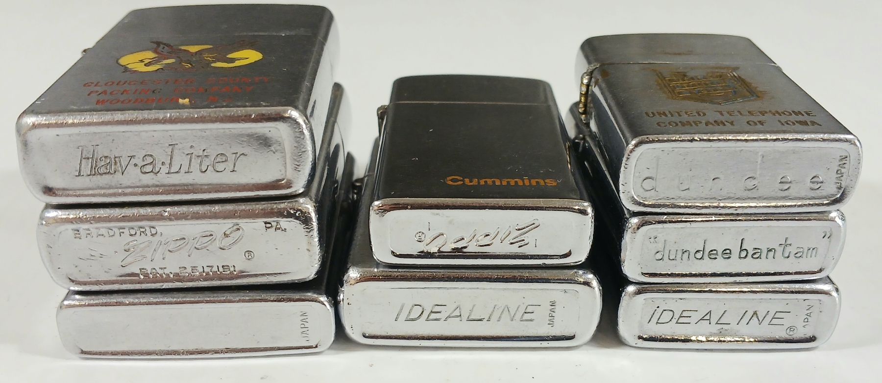 Lot 1059 LOT OF 8 - SILVER TONE LIGHTERS - INCL DUNDEE, HAV-A-LITER, ZIPPO, ETC