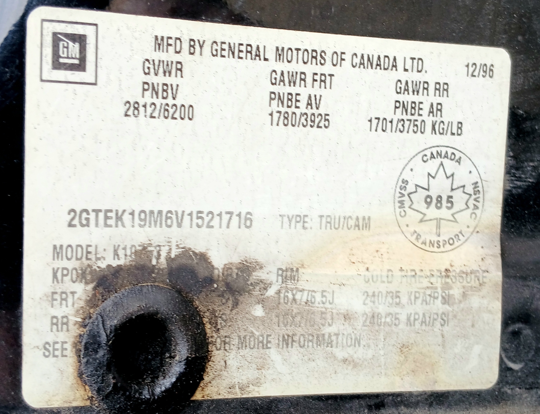 Lot 202 1997 GMC SIERRA TRUCK - 4X4 - 3549783 KM - NEW MOTOR +