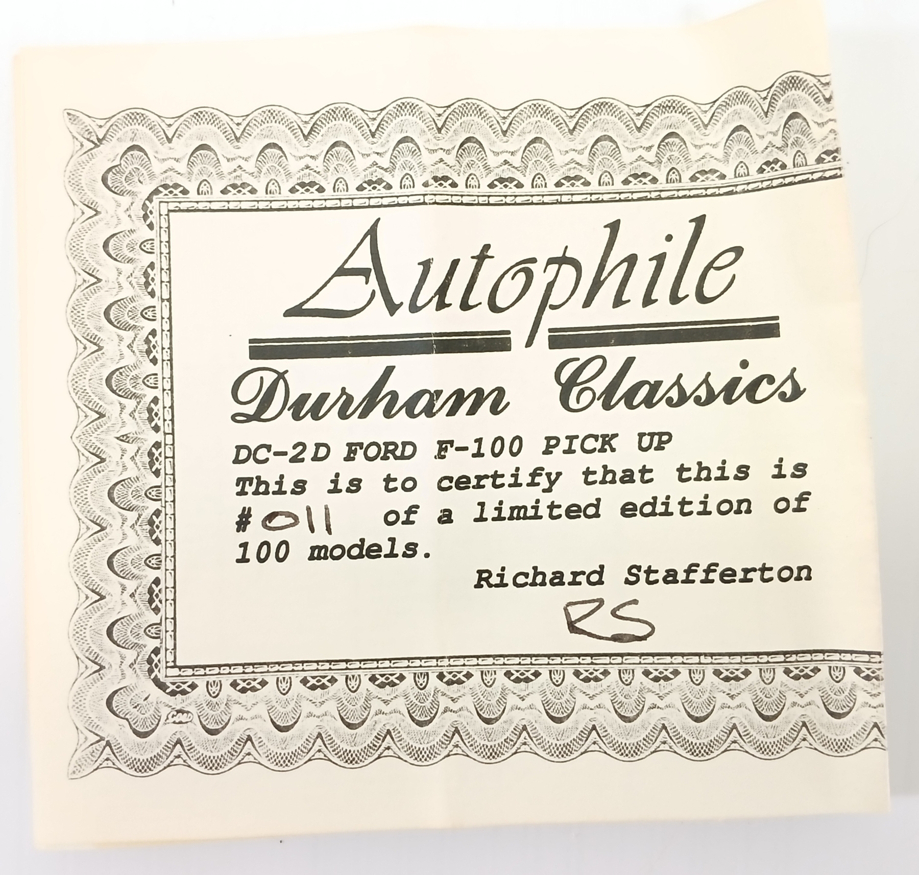Lot 1120 DURHAM CLASSICS DIECAST AUTOMOTIVE MINIATURE - 1953 FORD F-100 PICKUP