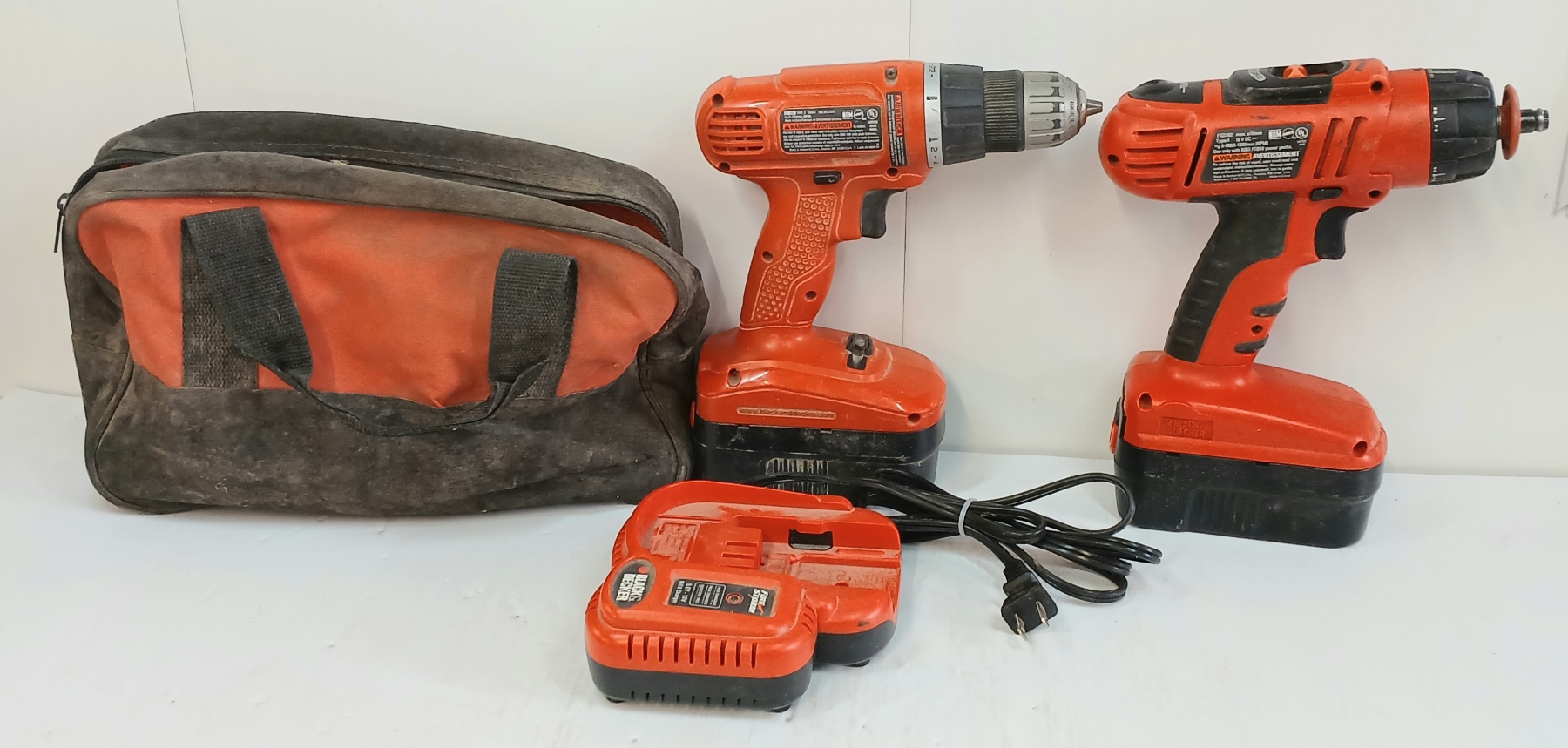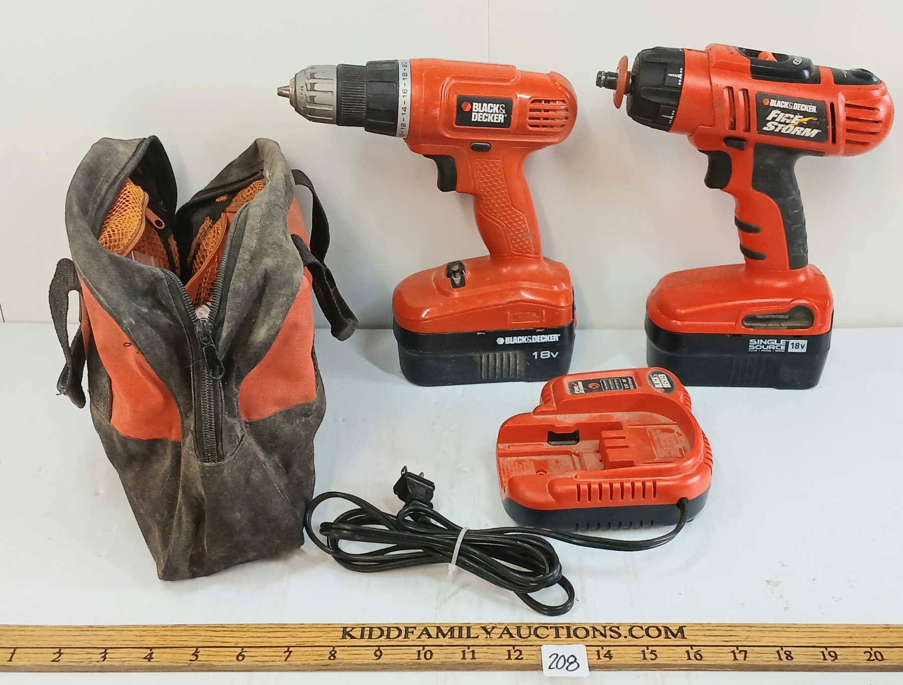 Lot 208 JOB LOT - BLACK & DECKER 18V CORDLESS DRILLS, BATTERY CHARGER, DRILL BITS & TOOL BAG