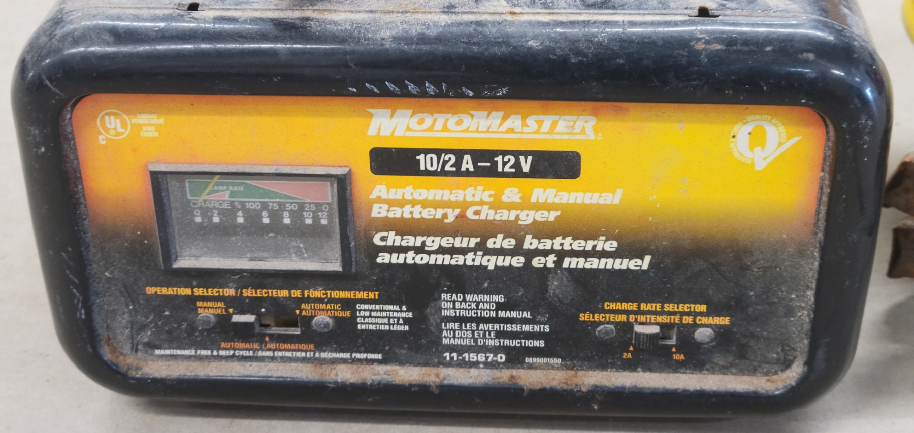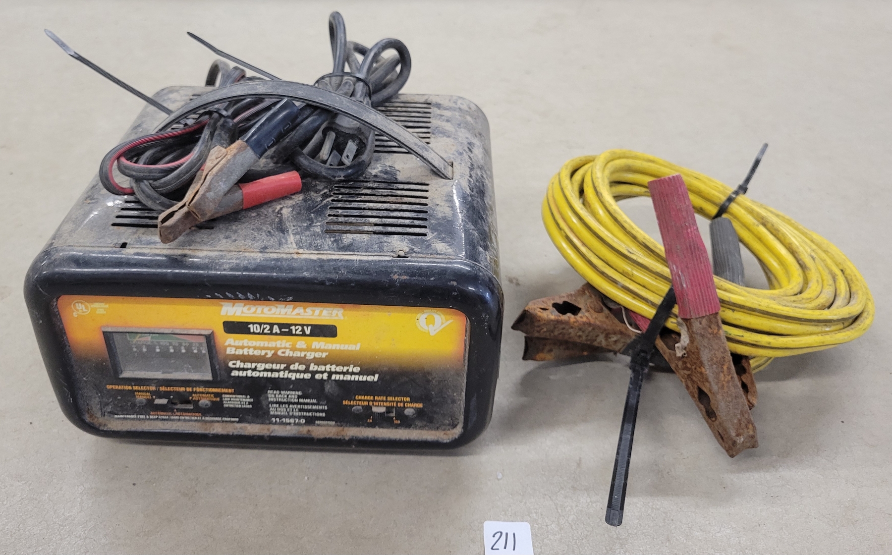 Lot 211 LOT OF 2 - MOTOMASTER 10/2 A-12V BATTERY CHARGER & JUMPER CABLES