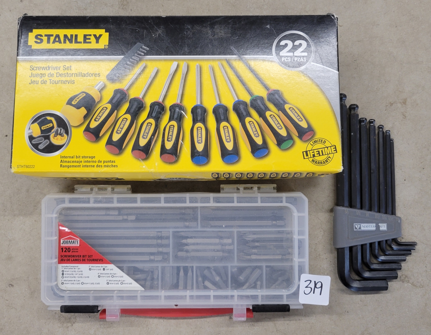 Lot 319 LOT OF 3 - STANLEY SCREWDRIVER SET, JOBMATE SCREWDRIVER BIT SET & MASTERCRAFT ALLAN KEYS