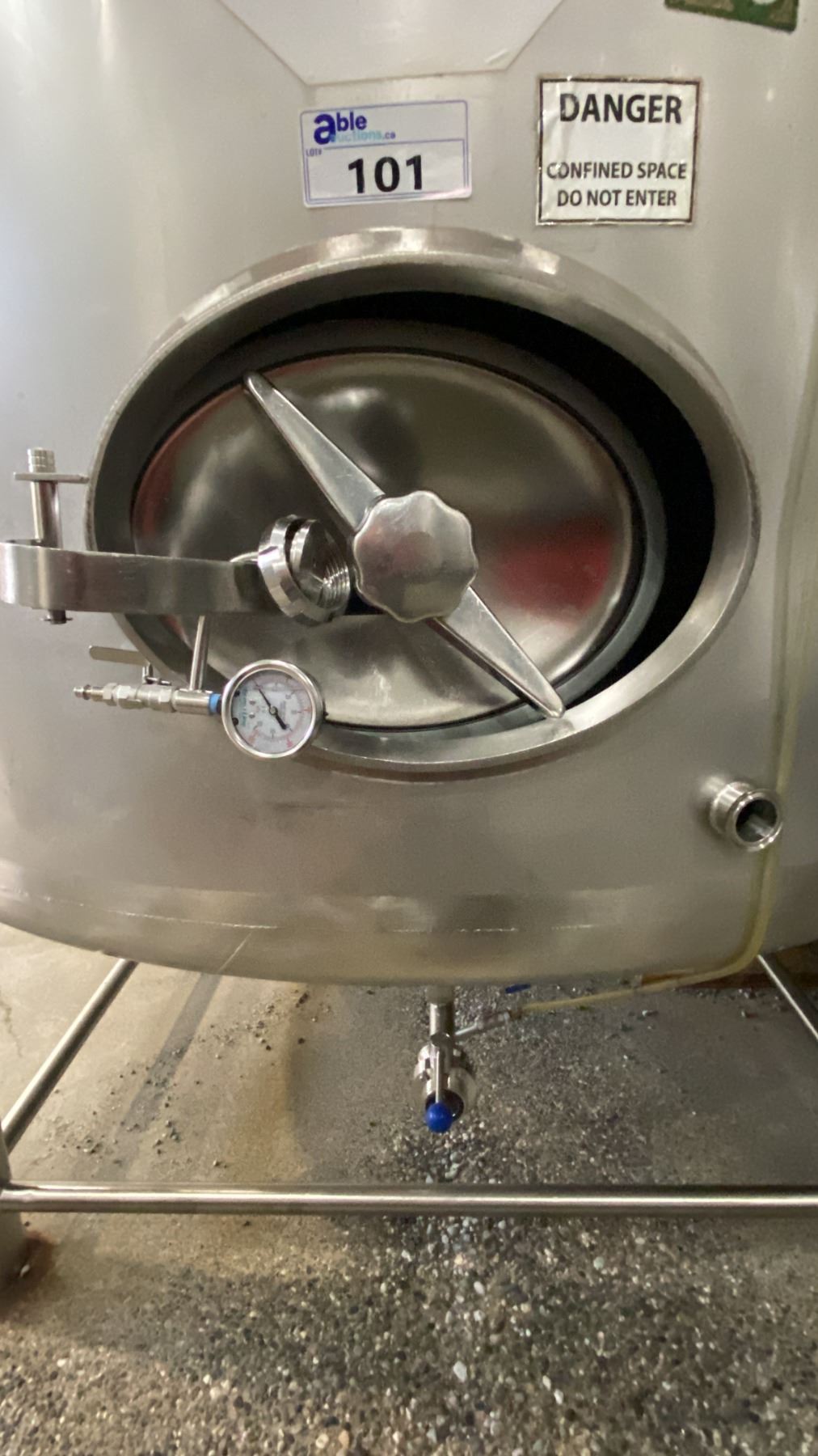 Lot 101 80 HECTOLITER STAINLESS STEEL FERMENTATION VESSEL - APPROX 6'D X 12'H FEET