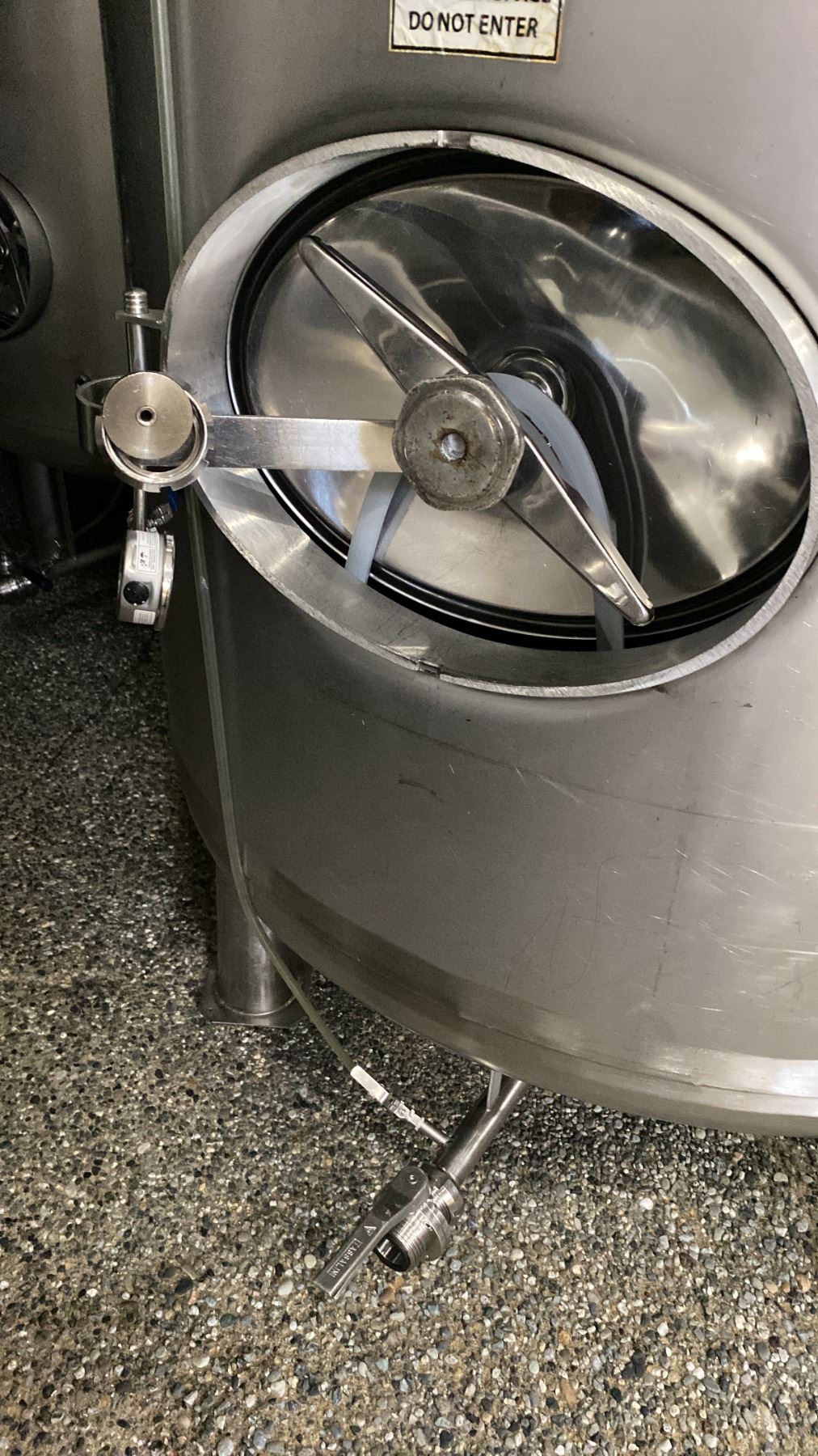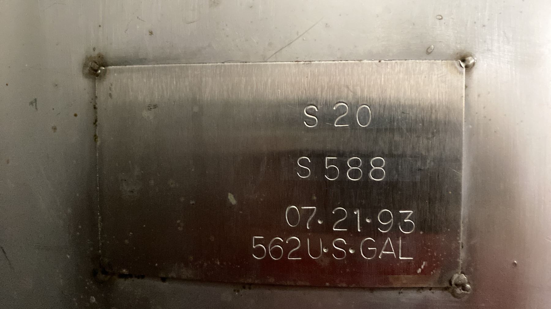 STAINLESS STEEL BRITE TANK MODEL-20 HECTOLITER - APPROX 4'D X 13'H FEET *BUYER WILL REQUIRE ANY TOOLS/EQUIPMENT AND HELP NECESSARY FOR REMOVAL* *REQUIRES HIAB/CRANE FOR REMOVAL*