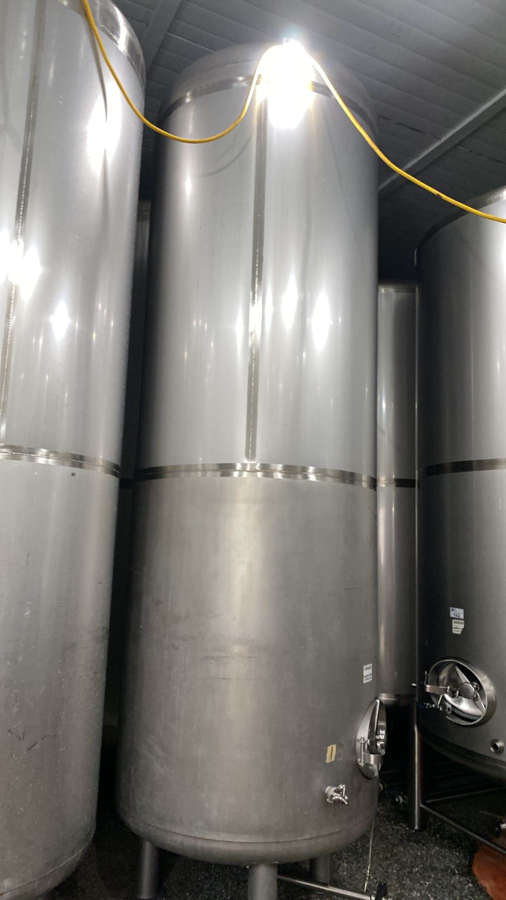 STAINLESS STEEL BRITE TANK MODEL-20 HECTOLITER - APPROX 4'D X 13'H FEET *BUYER WILL REQUIRE ANY TOOLS/EQUIPMENT AND HELP NECESSARY FOR REMOVAL* *REQUIRES HIAB/CRANE FOR REMOVAL*