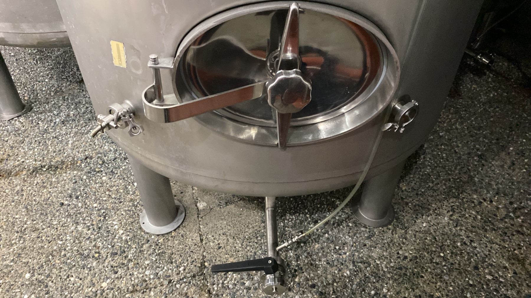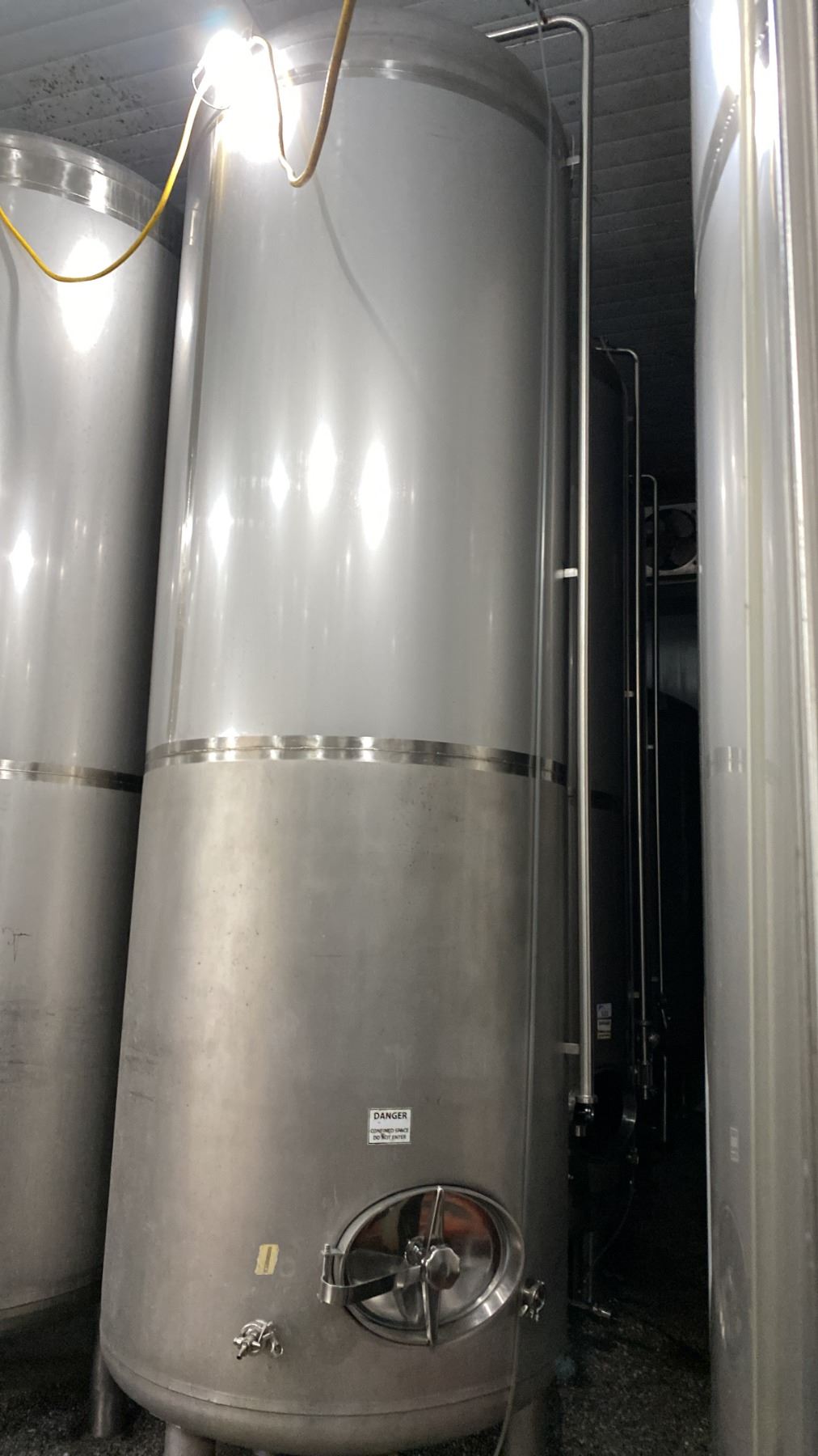 STAINLESS STEEL BRITE TANK MODEL-20 HECTOLITER - APPROX 4'D X 13'H FEET *BUYER WILL REQUIRE ANY TOOLS/EQUIPMENT AND HELP NECESSARY FOR REMOVAL* *REQUIRES HIAB/CRANE FOR REMOVAL*