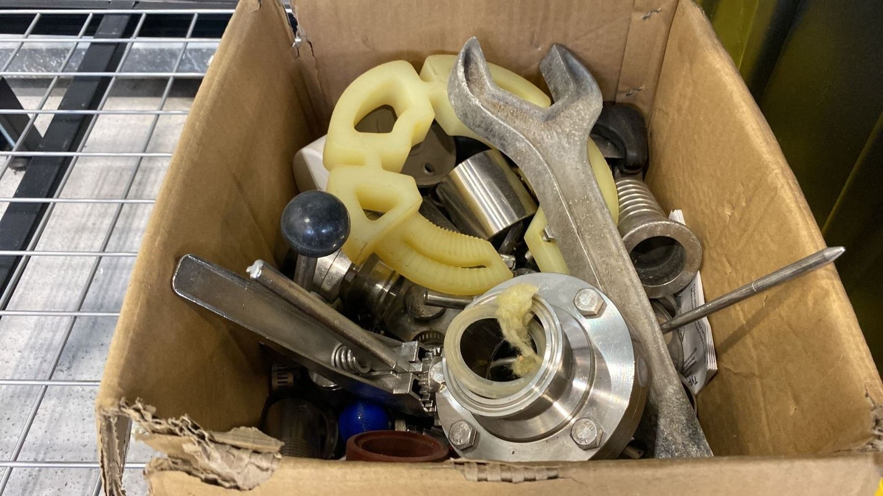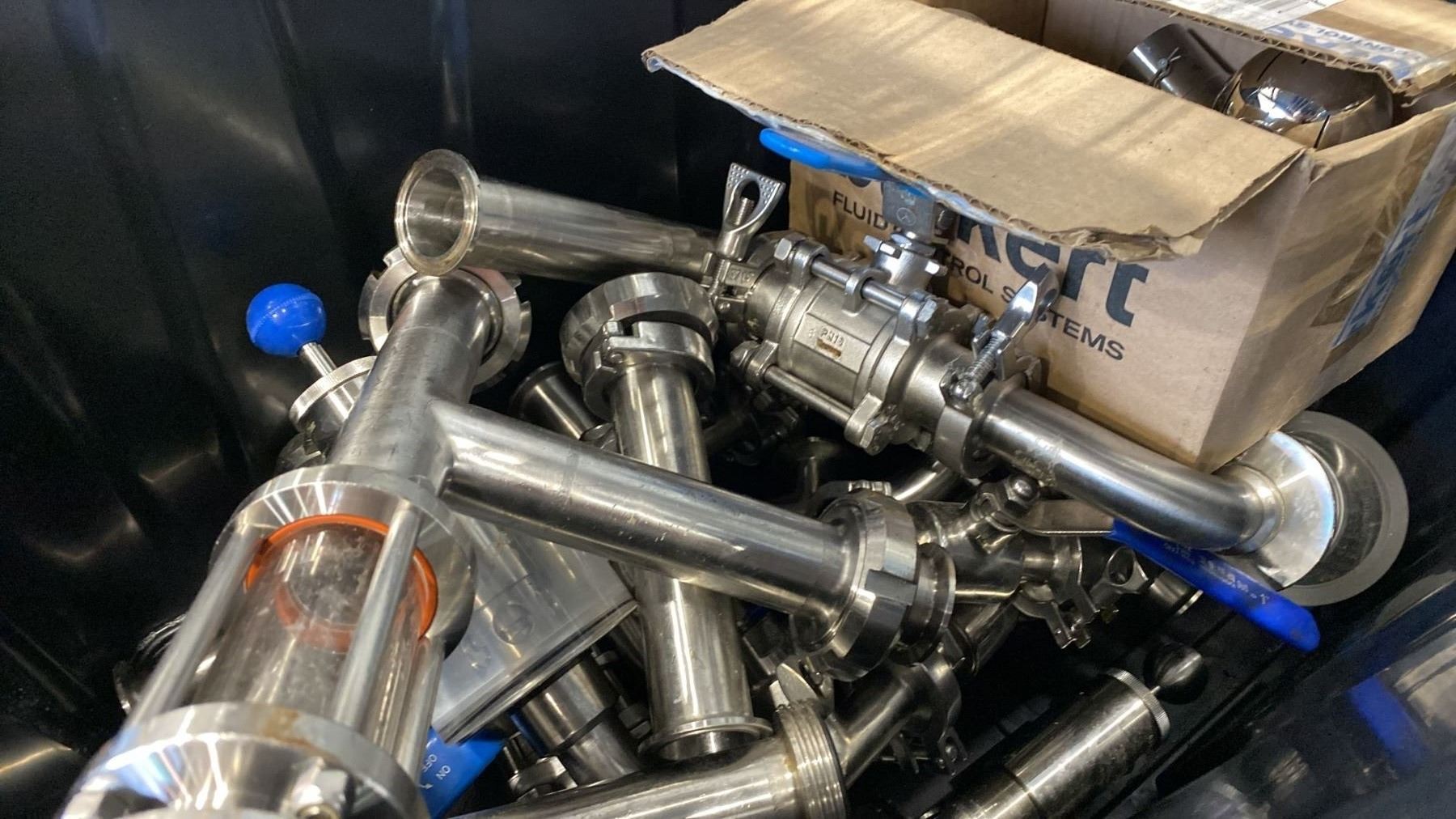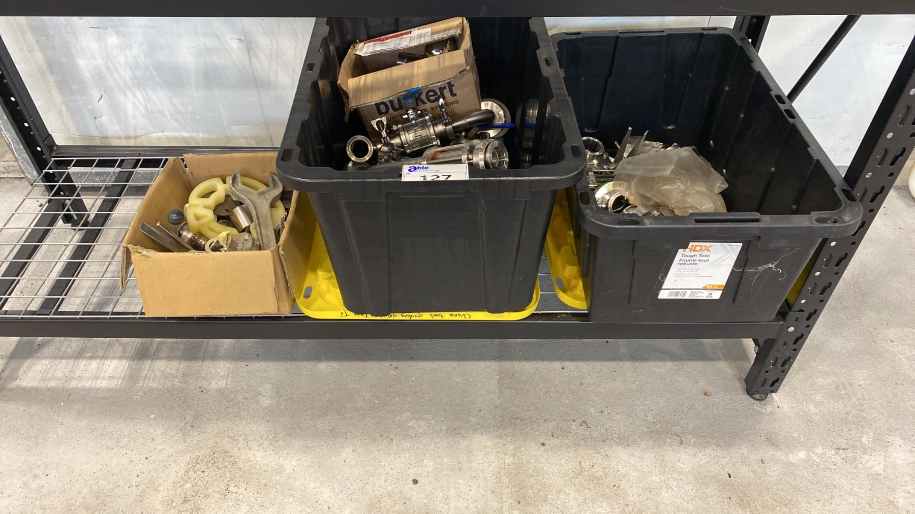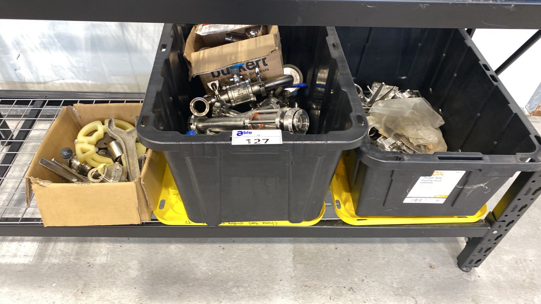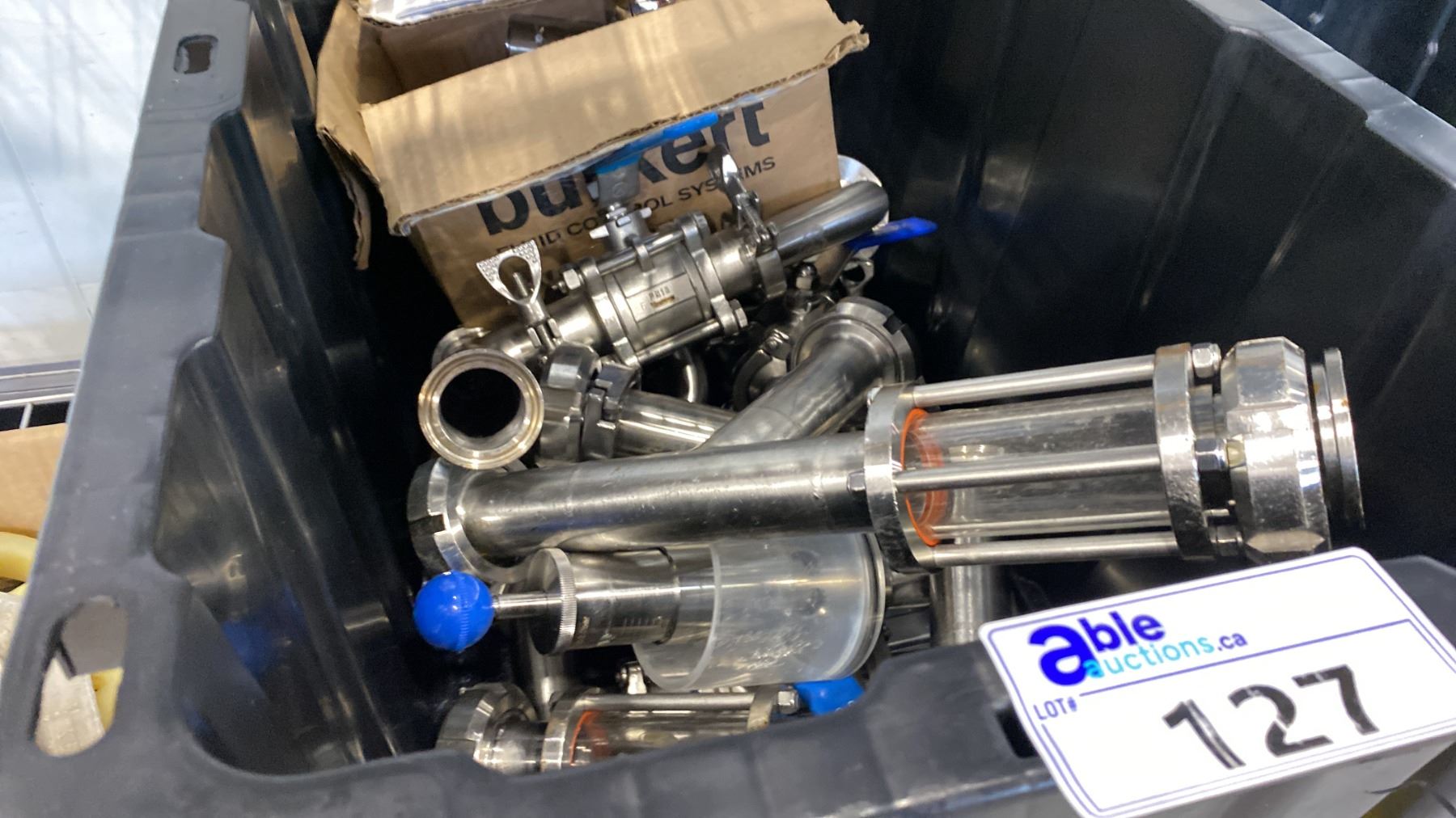 Lot 127 STAINLESS STEEL INDUSTRIAL SANITARY SIGHT GLASS, FLUID CONTROL SYSTEM, SHUTOFF VALVES AND MORE