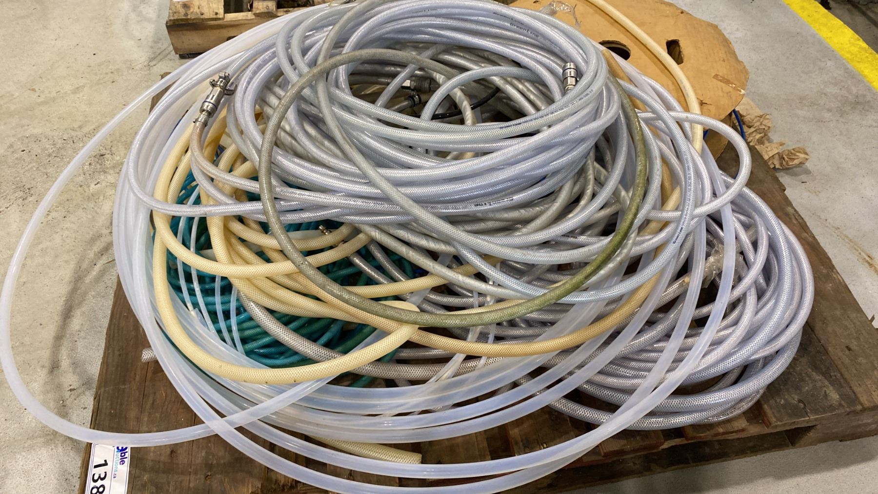 Lot 138 PALLET OF HOSE LINES INCL SHUTOFF VALVES AND MORE