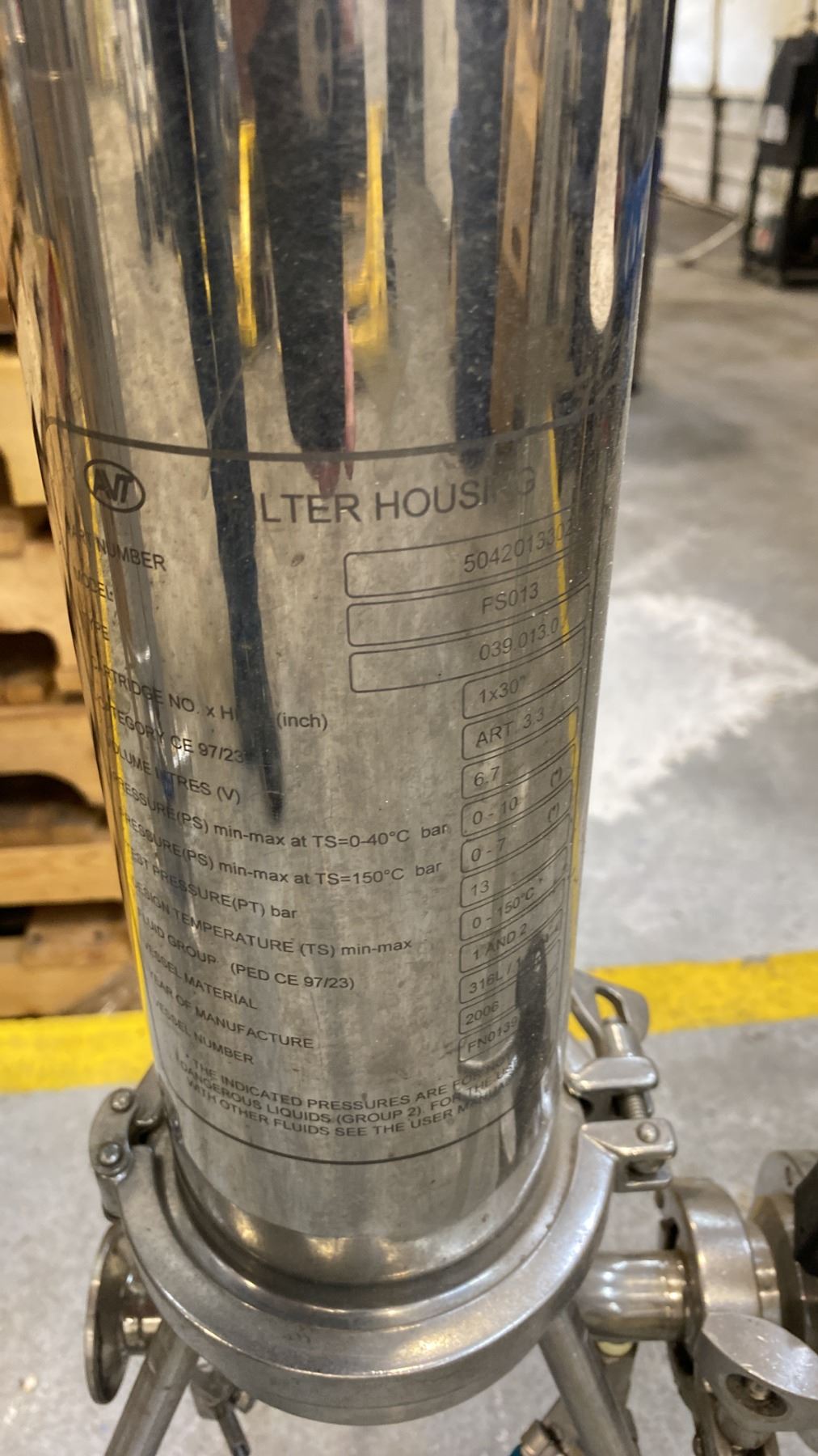Lot 155 AVT (MODEL SH013) SANITARY STAINLESS STEEL FILTER HOUSING