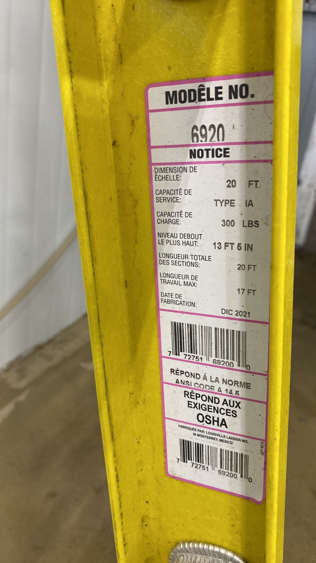 Lot 160 FEATHERLITE 6920 INDUSTRIAL-GRADE FIBERGLASS EXTENSION LADDER 20-FOOT