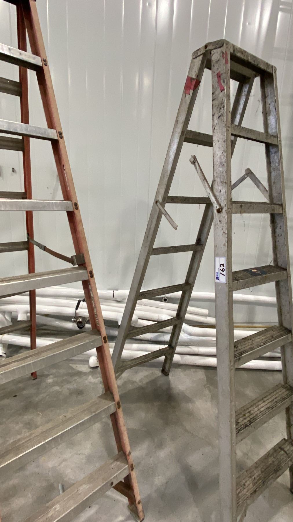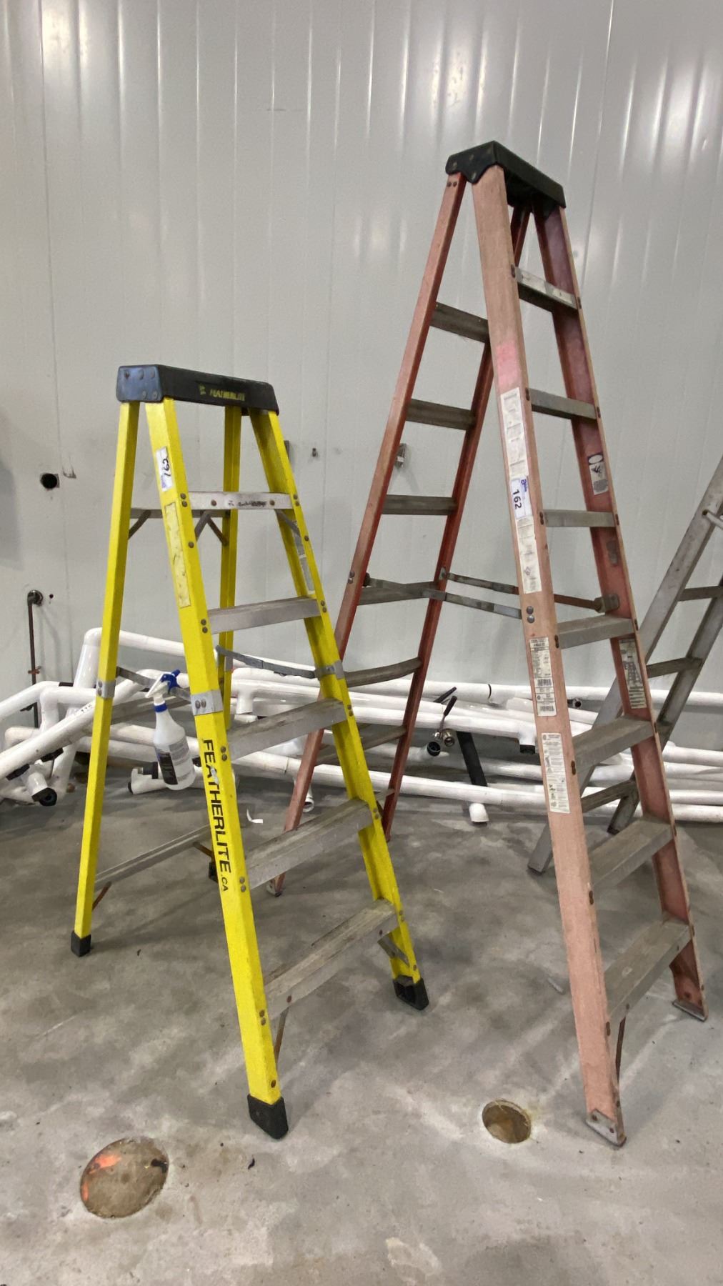 Lot 162 STURDY AR665-08C FIBERGLASS STEPLADDER 8-FOOT, FEATHELITE 68" STEPLADDER AND