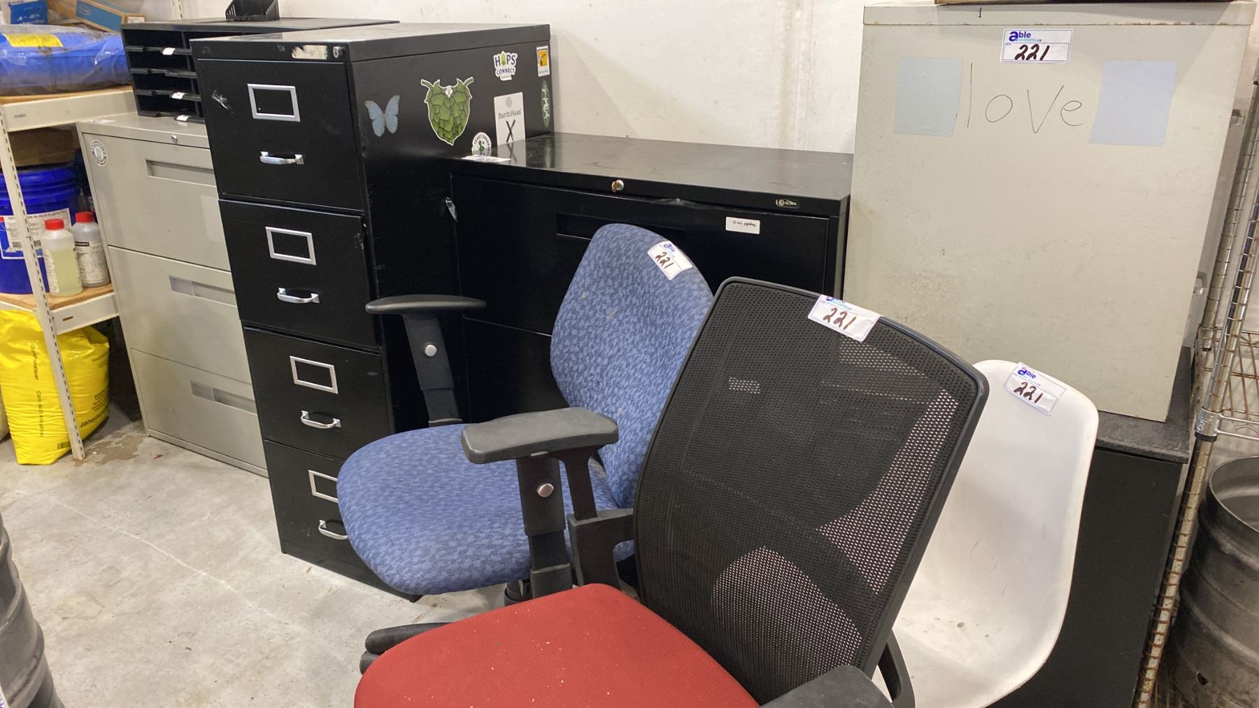 Lot 221 LARGE GROUP OF OFFICE FILING CABINETS, CHAIRS AND ORGANIZERS