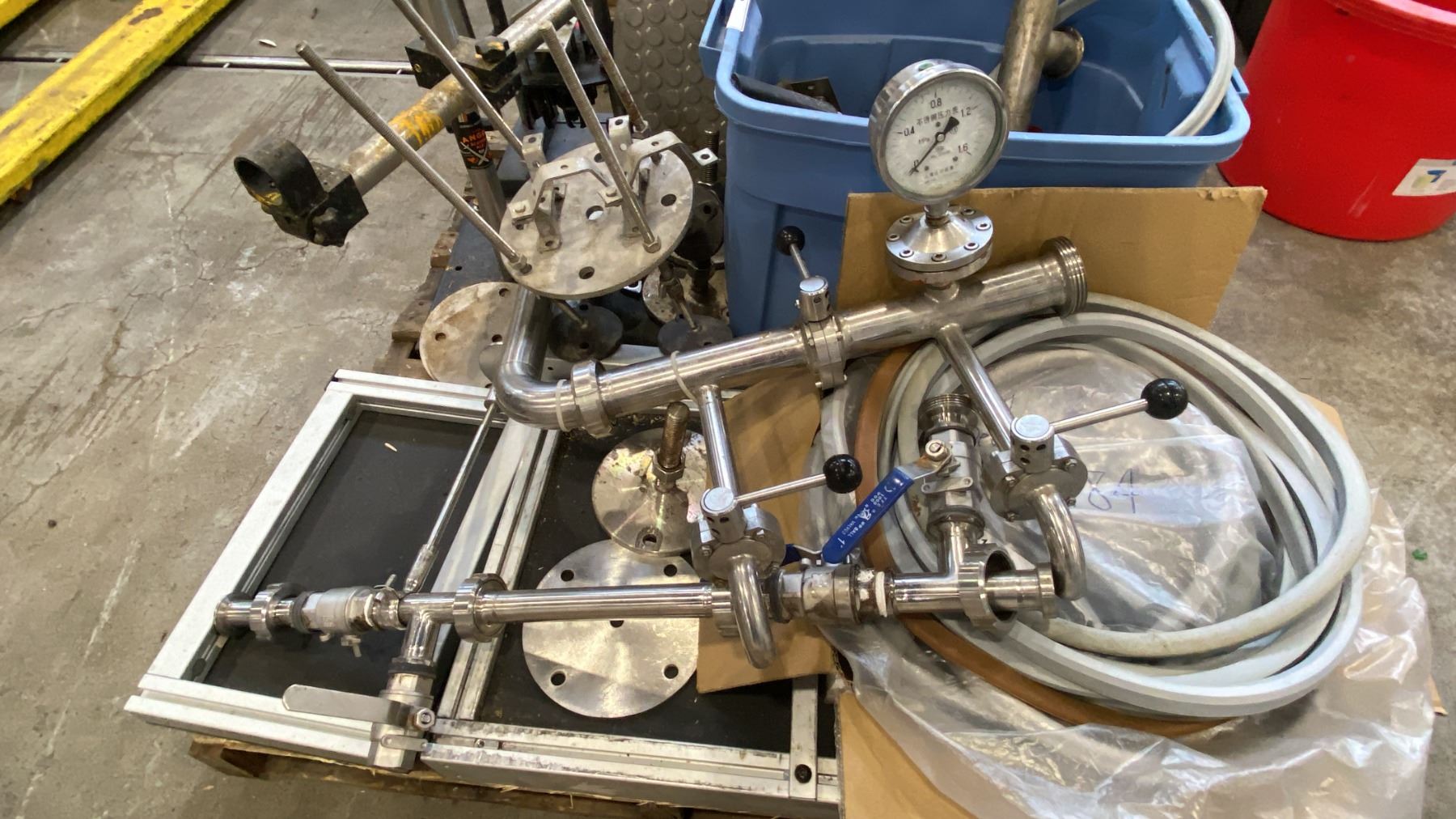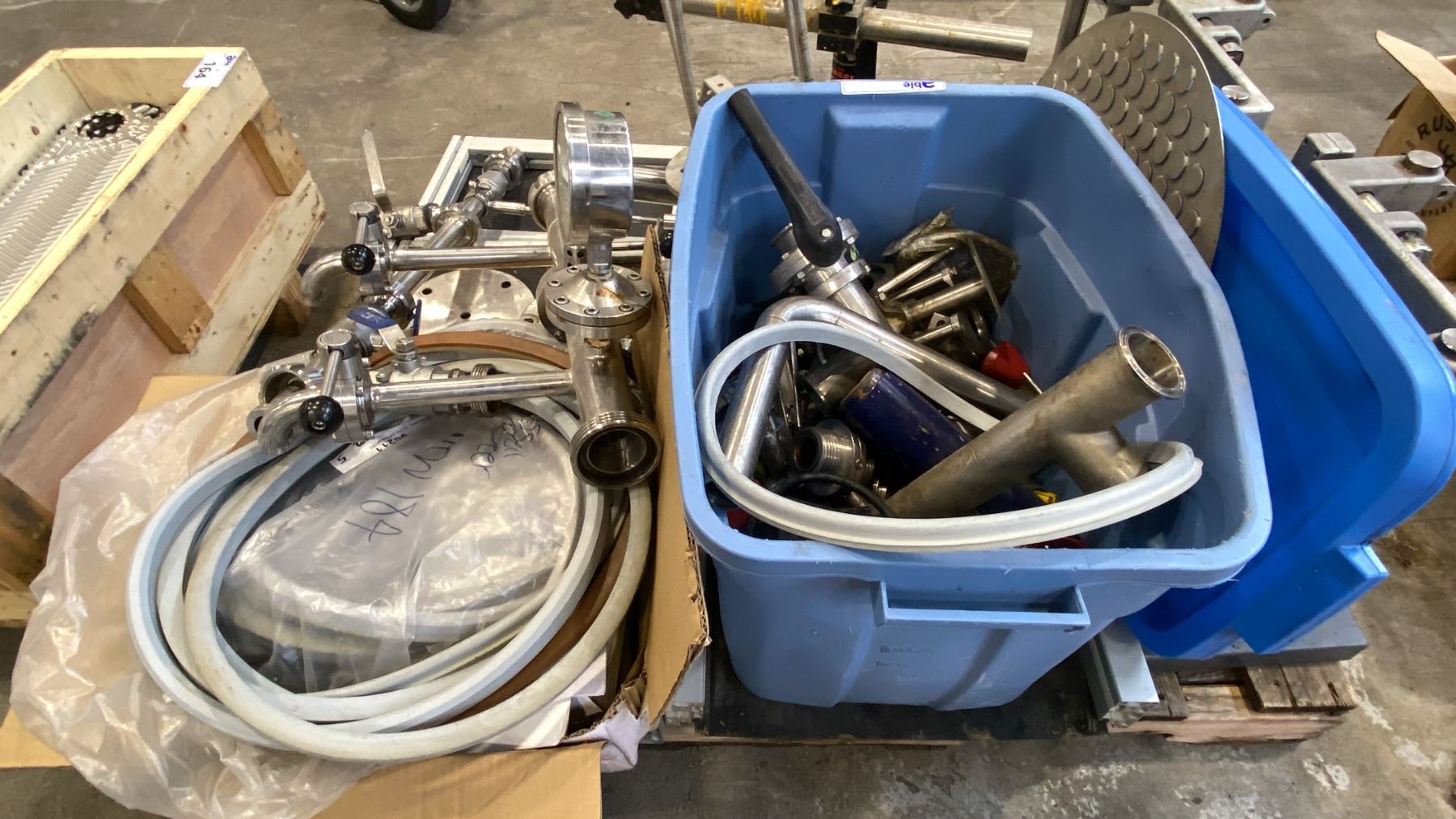 PALLET OF MIXED ITEMS INCL REPAC MANUAL CAN CARRIER APPLICATION EQUIPMENT'S, STAND, SANITARY FITTINGS/PLUMBING AND MORE
