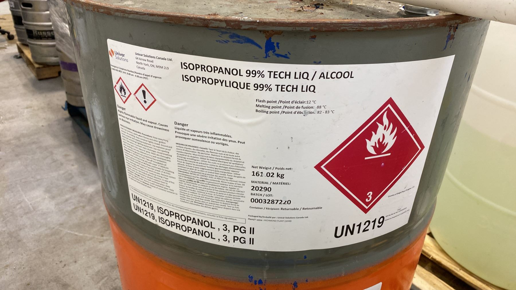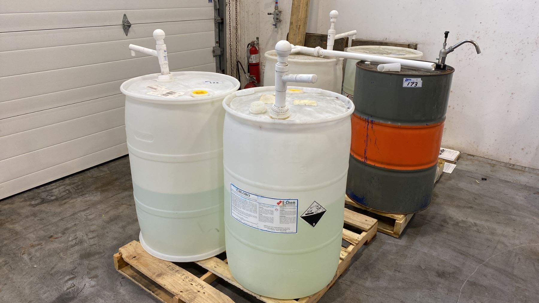 Lot 173 GROUP OF (5) BARRELS OF ASSORTED LIQUID CHEMICAL COMPOUNDS (VARIOUS AMOUNTS LEFT) -