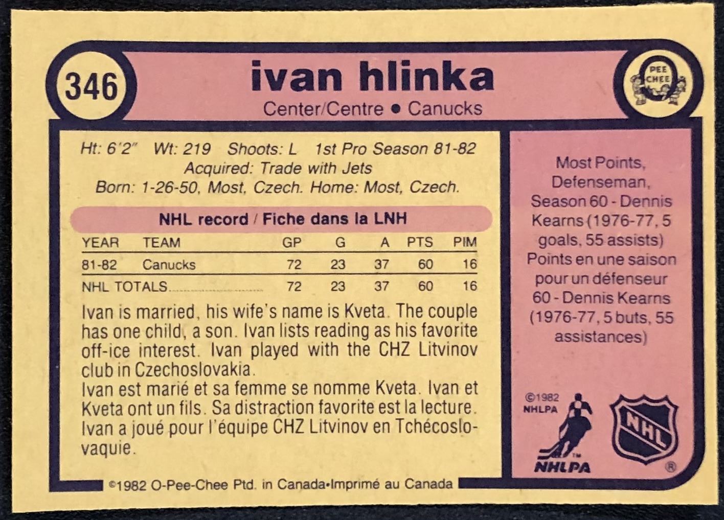 Lot 75 1982-83 O-PEE-CHEE IVAN HLINKA ROOKIE CARD