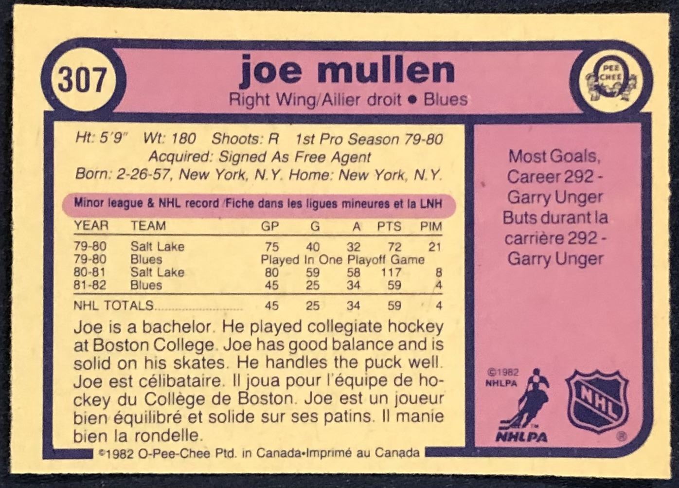 Lot 76 1982-83 O-PEE-CHEE JOE MULLEN (HOF) ROOKIE CARD