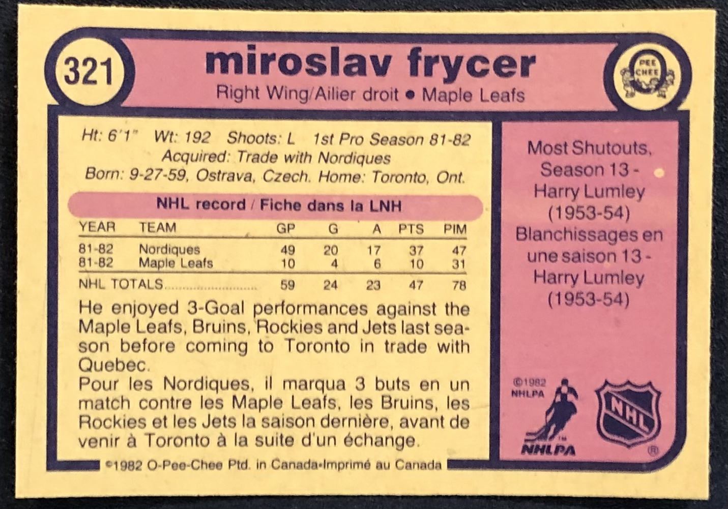 Lot 87 1982-83 O-PEE-CHEE MIROSLAV FRYCER ROOKIE CARD