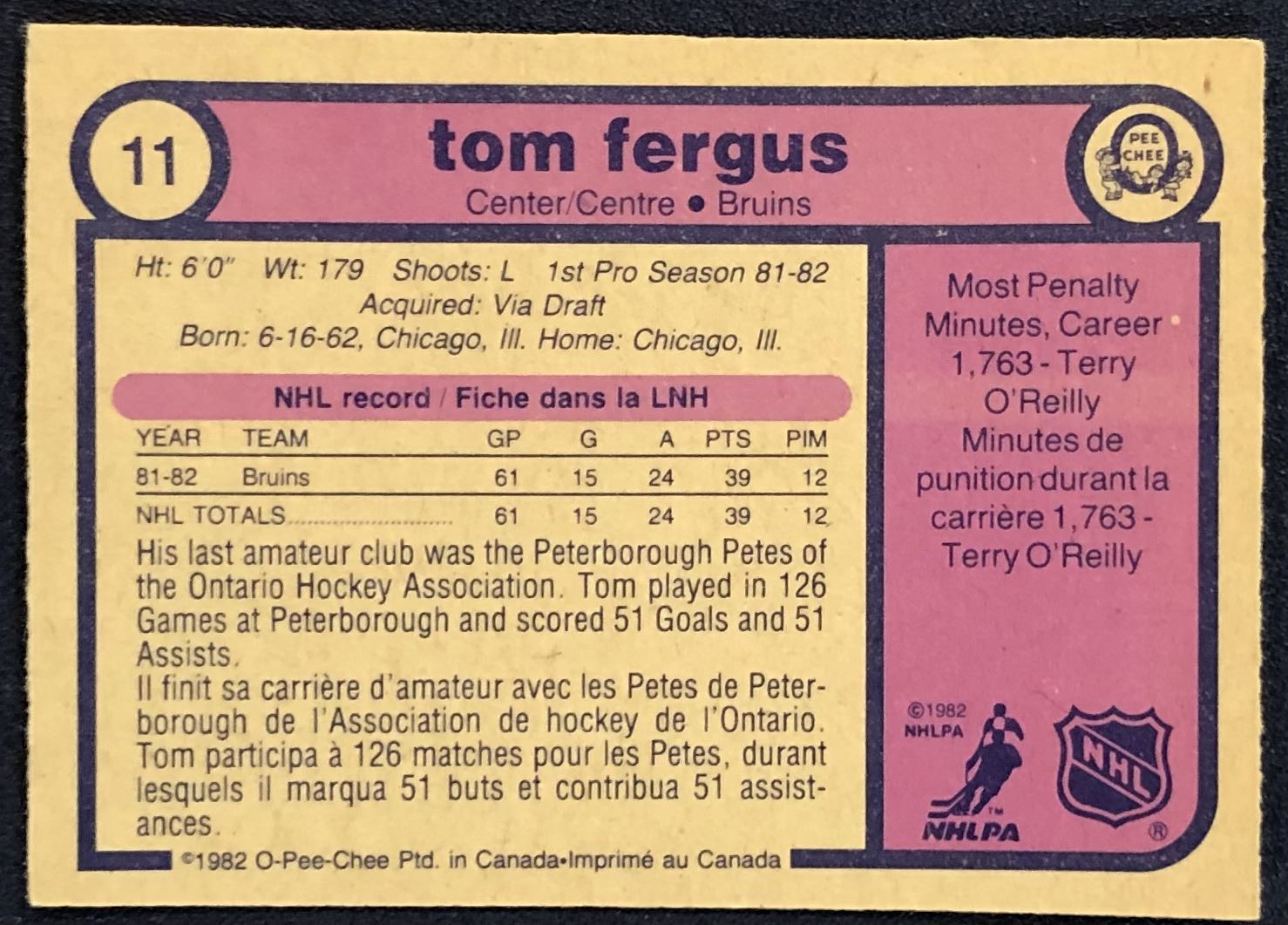 Lot 108 1982-83 O-PEE-CHEE TOM FERGUS ROOKIE CARD