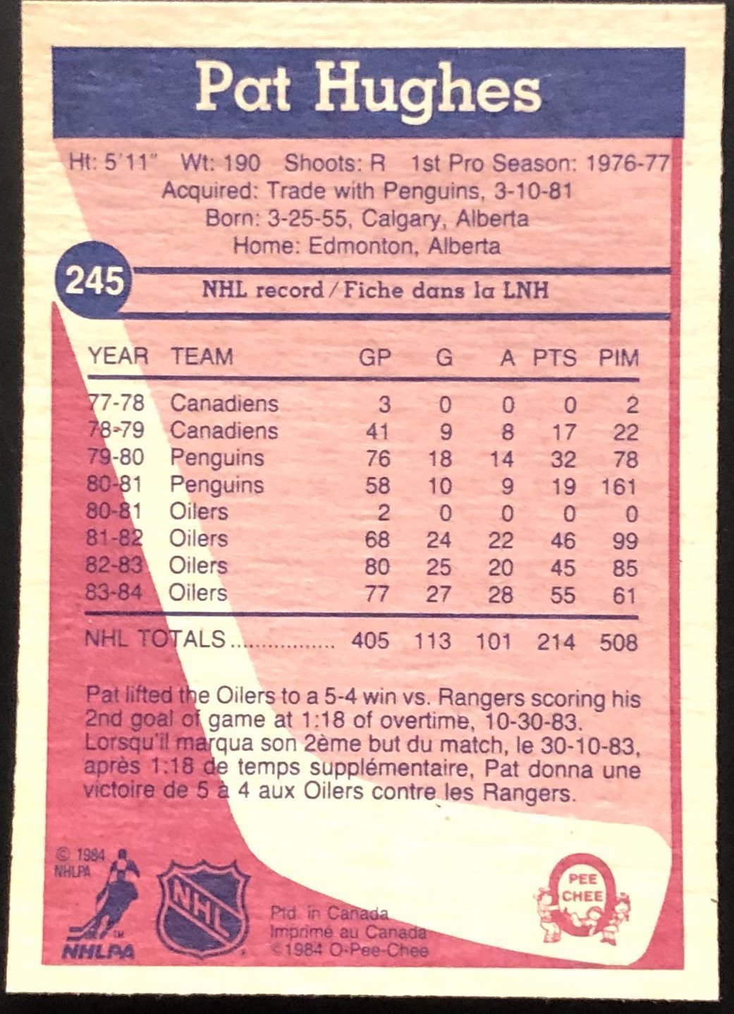 Lot 114 1984-85 O-PEE-CHEE PAT HUGHES