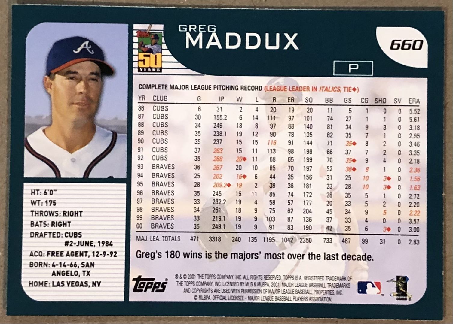 Lot 136 2001 TOPPS GREG MADDUX (HOF)