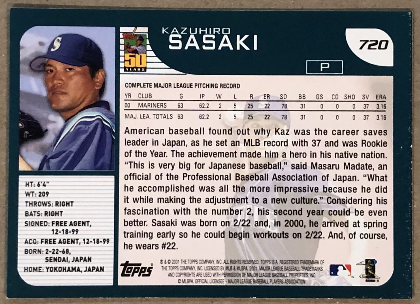 Lot 140 2001 TOPPS KAZUHIRO SASAKI ROOKIE CARD
