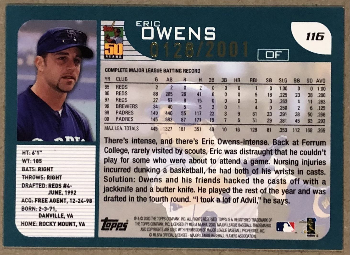 Lot 144 2001 TOPPS LIMITED EDITION ERIC OWENS