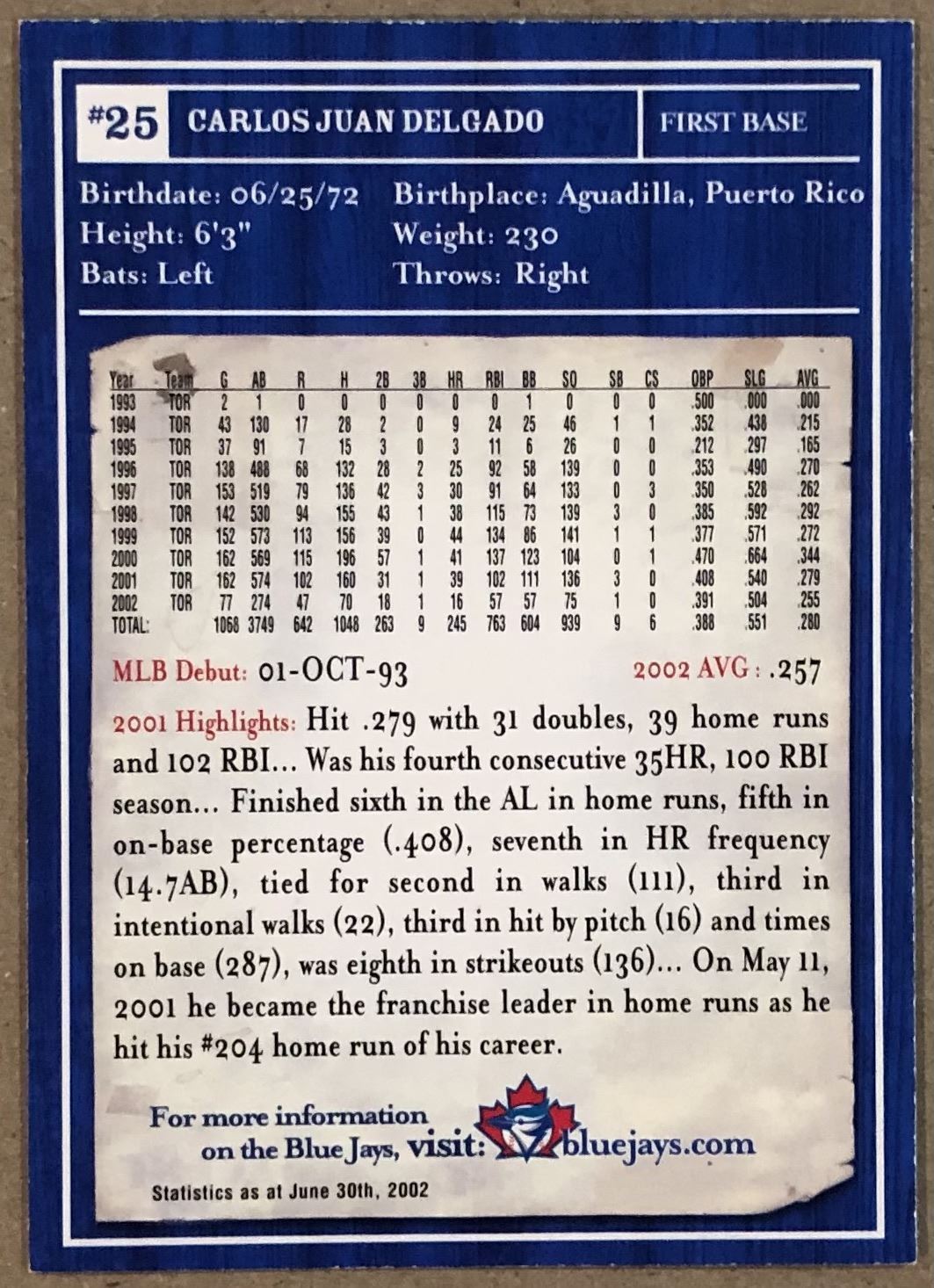 Lot 172 2003 JAYS FOUNDATION CARLOS DELGADO