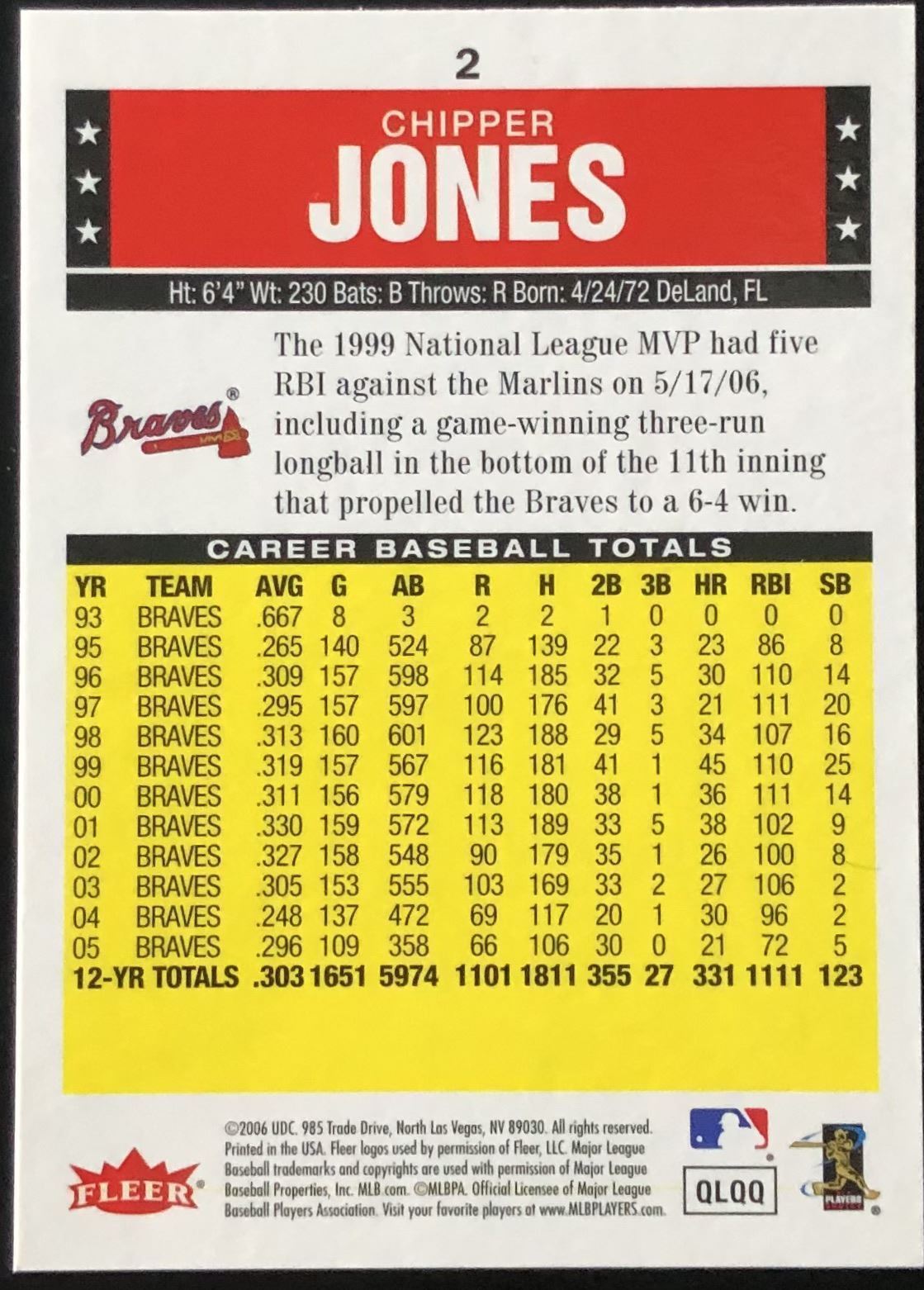 Lot 181 2006 FLEER CHIPPER JONES (HOF)