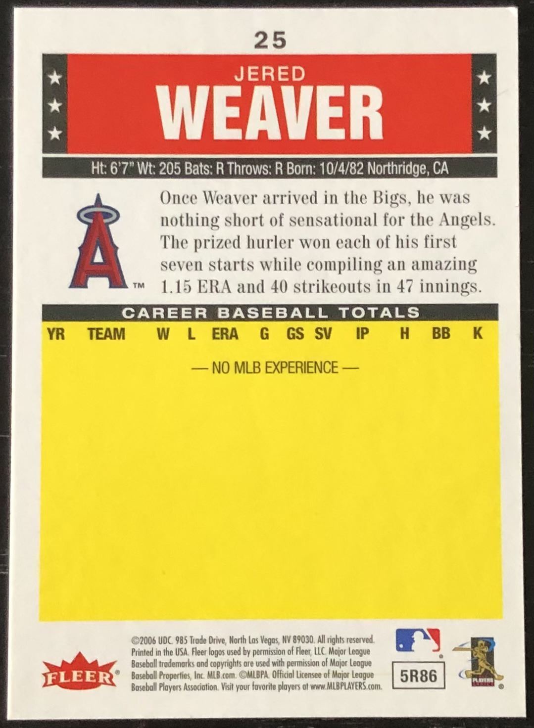 Lot 182 2006 FLEER JERED WEAVER ROOKIE CARD