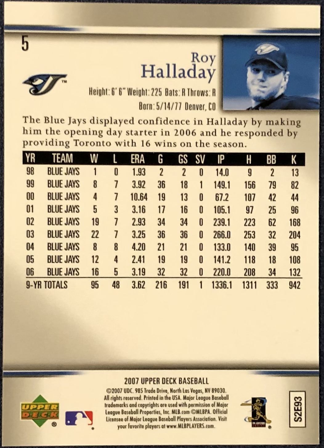 Lot 195 2007 UPPER DECK ROY HALLADAY (HOF)