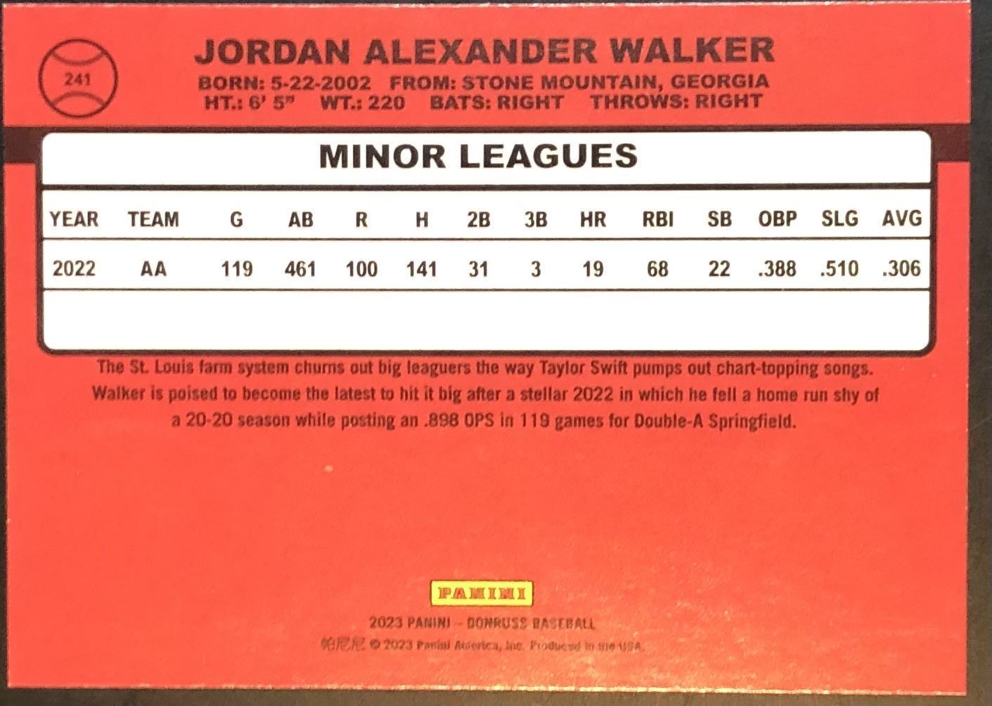 Lot 209 2023 DONRUSS JORDAN WALKER ROOKIE CARD