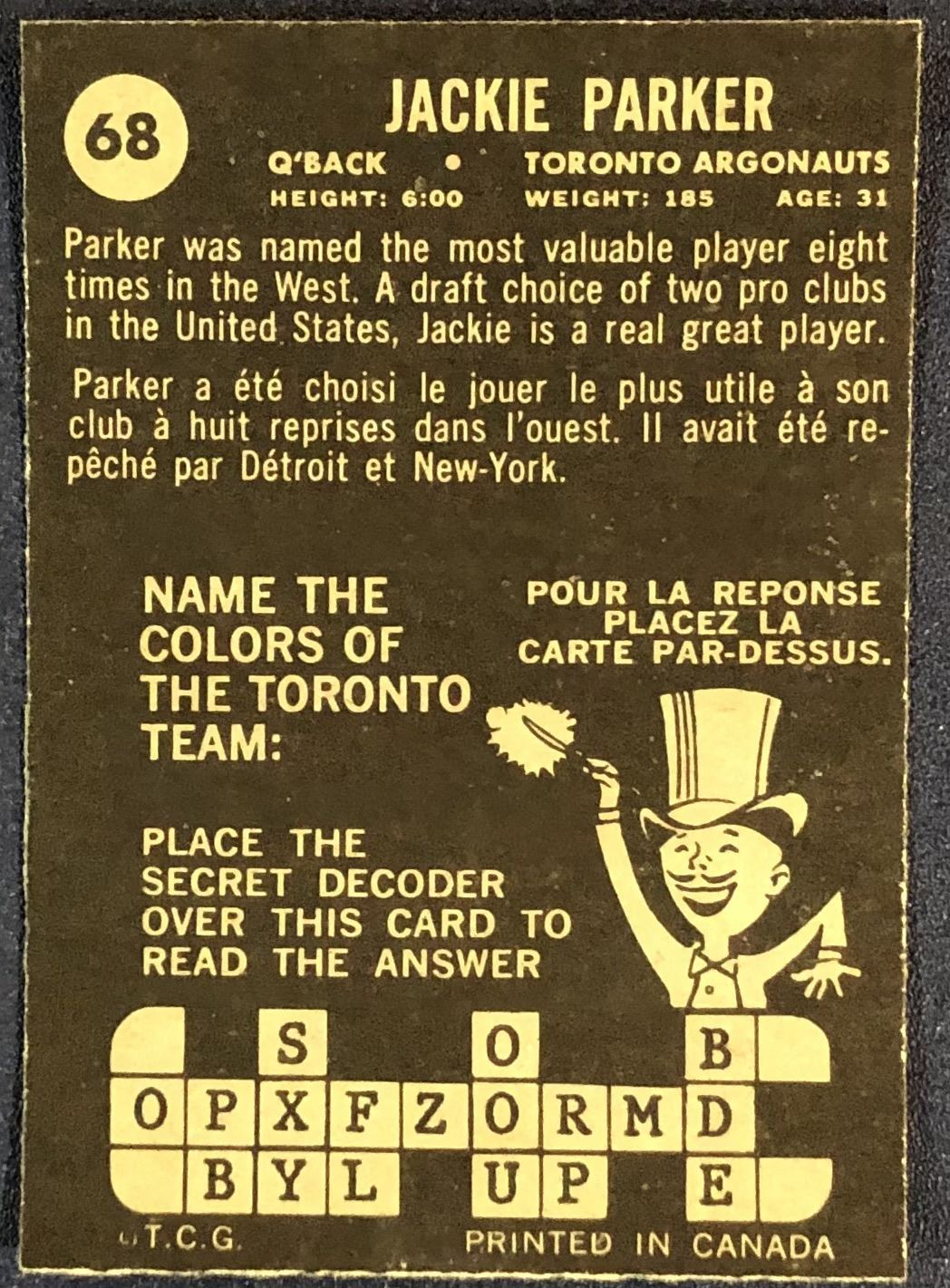 Lot 247 1964 O-PEE-CHEE CFL JACKIE PARKER (HOF)