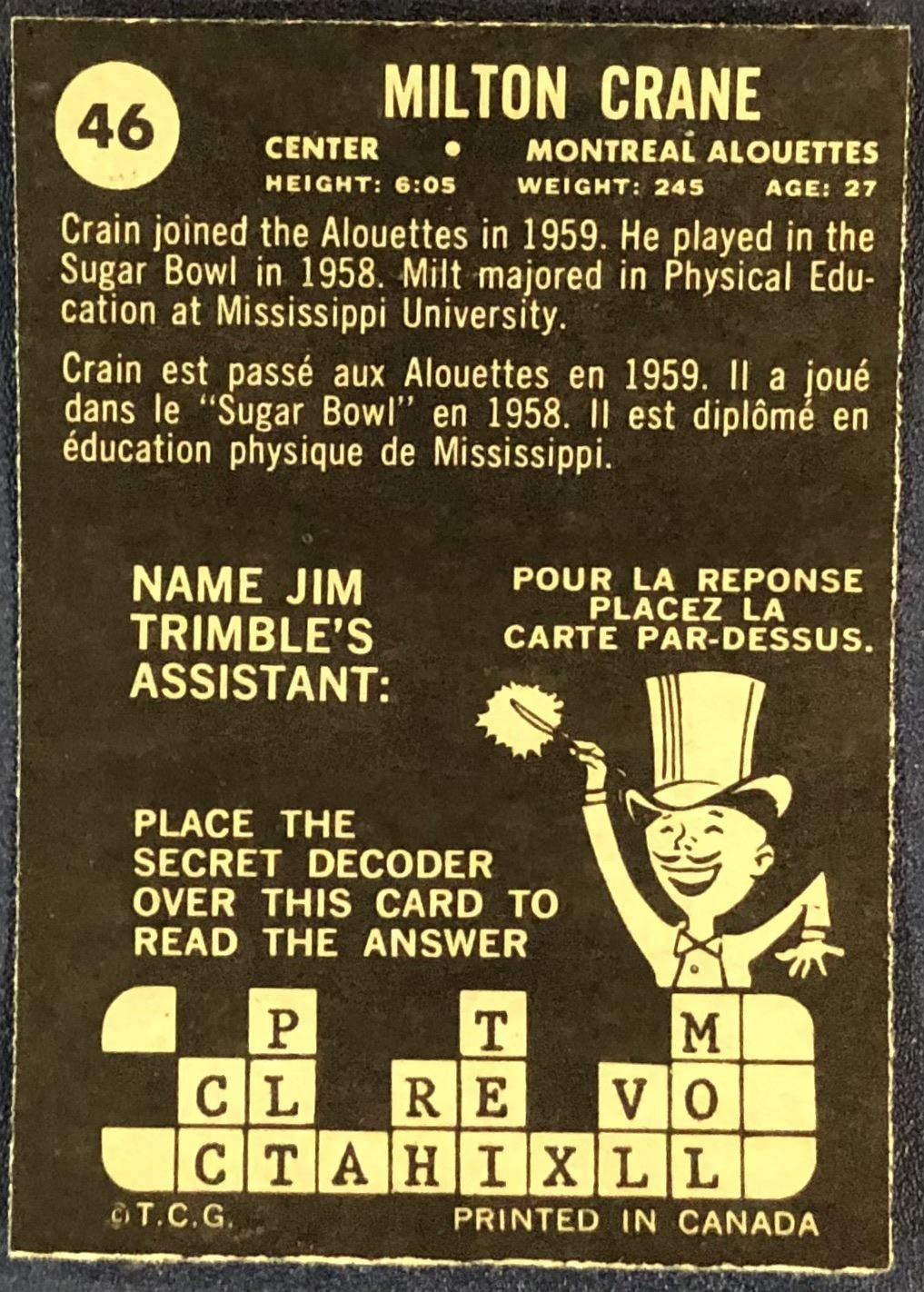 Lot 249 1964 O-PEE-CHEE CFL MILTON CRANE