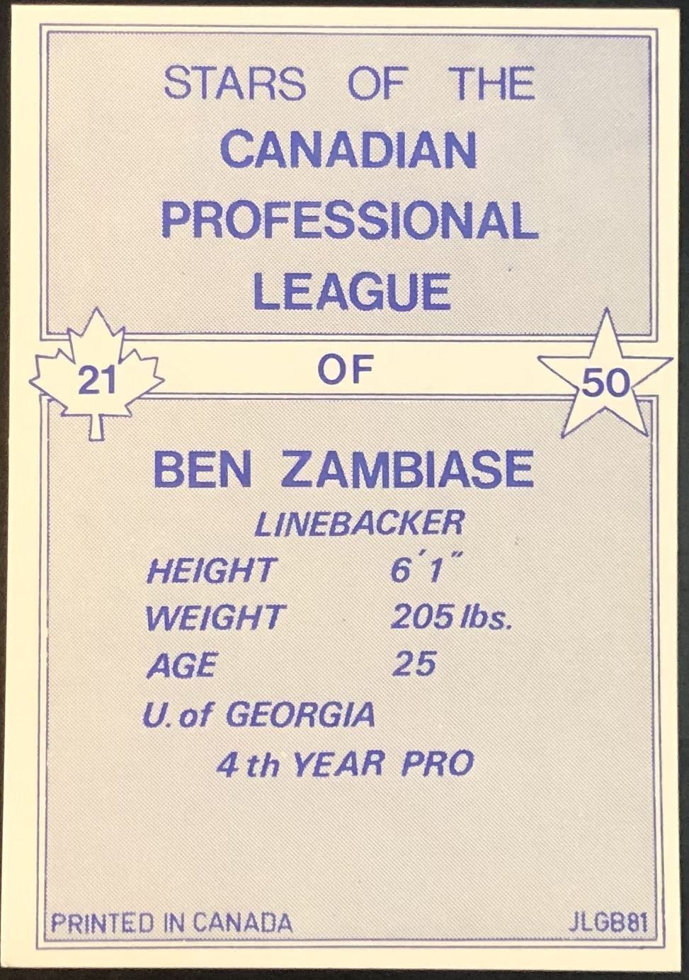 Lot 255 1981 JOGO CFL BEN ZAMBIASI (HOF)