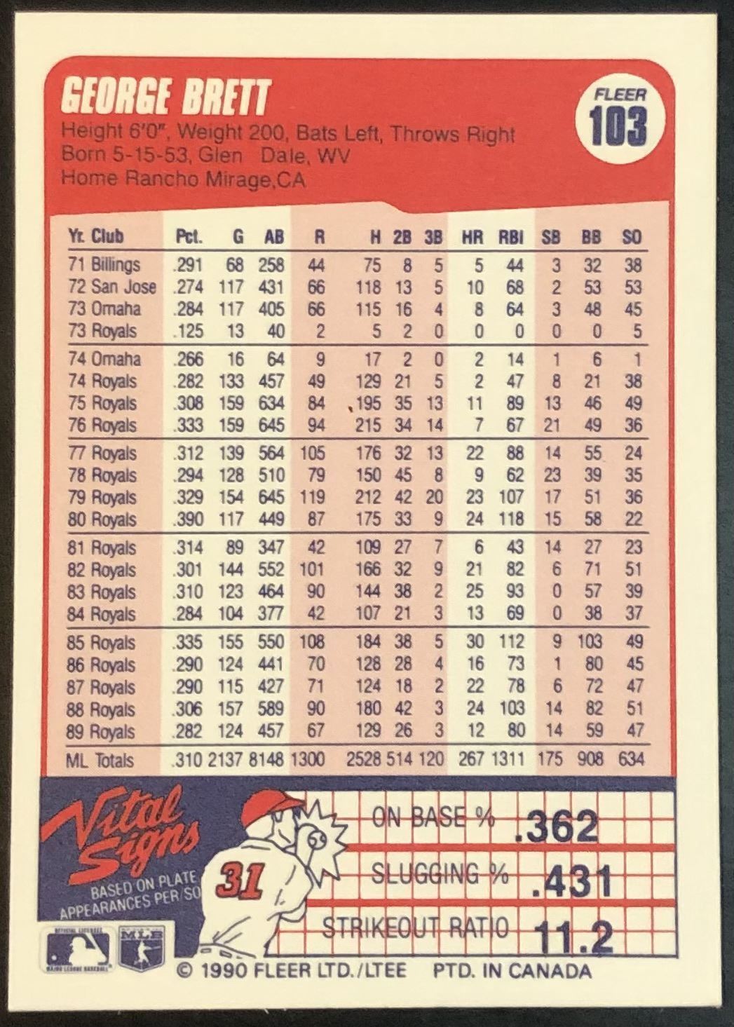 Lot 274 1990 FLEER GEORGE BRETT (HOF)