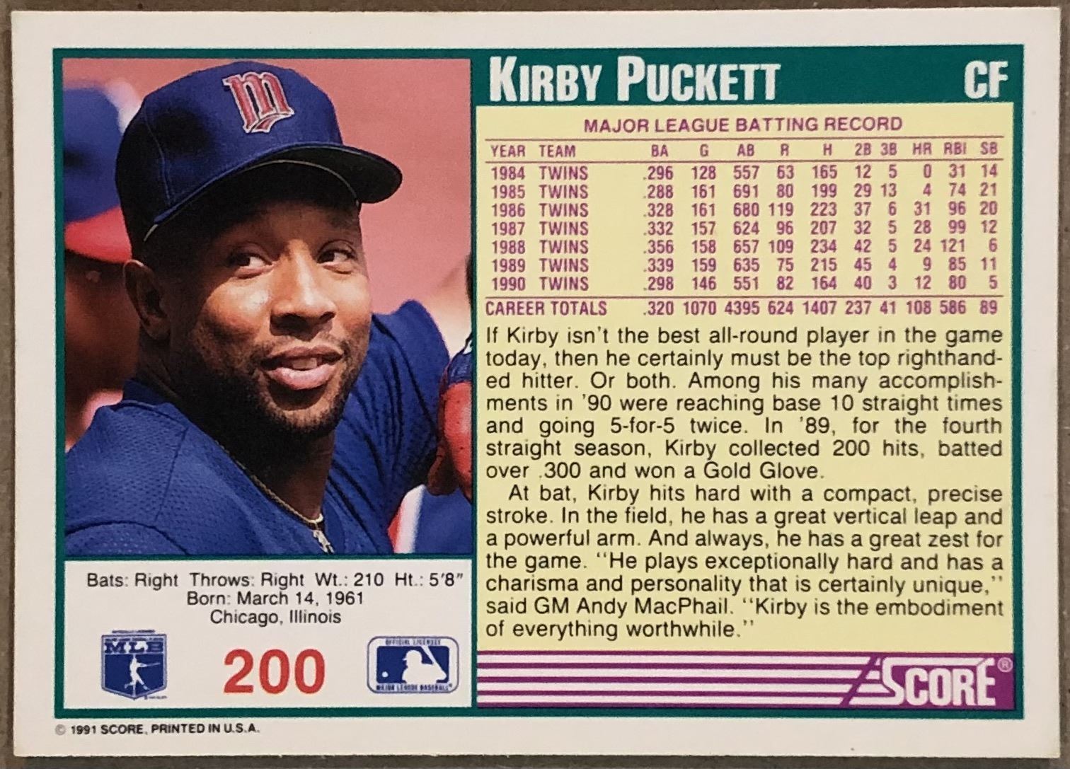 Lot 296 1991 SCORE KIRBY PUCKETT (HOF)