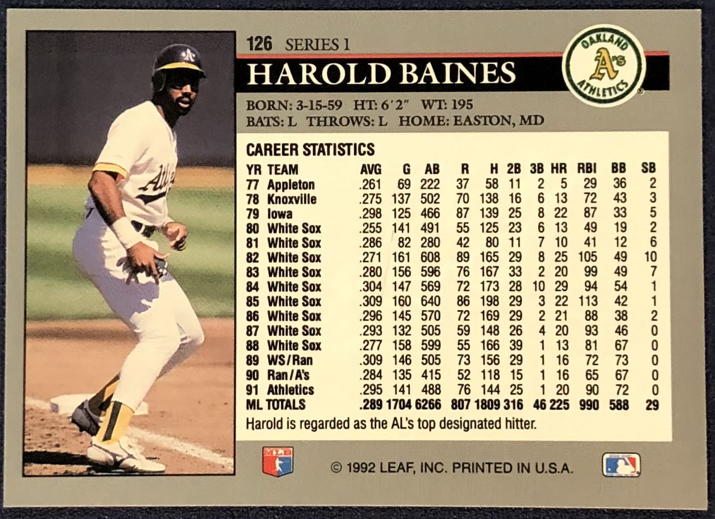 Lot 324 1992 LEAF HAROLD BAINES (HOF)