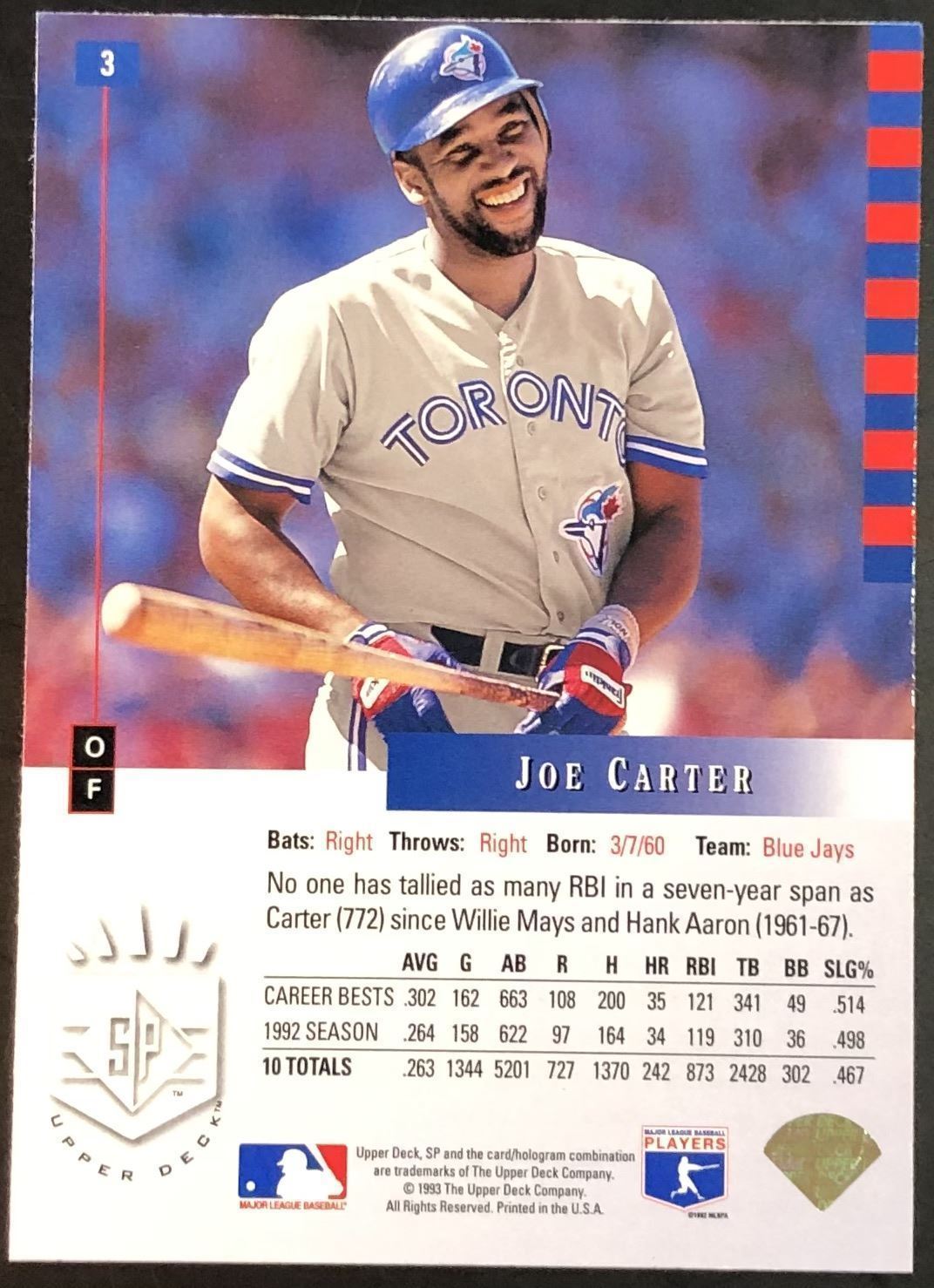 Lot 341 1993 UPPER DECK SP JOE CARTER