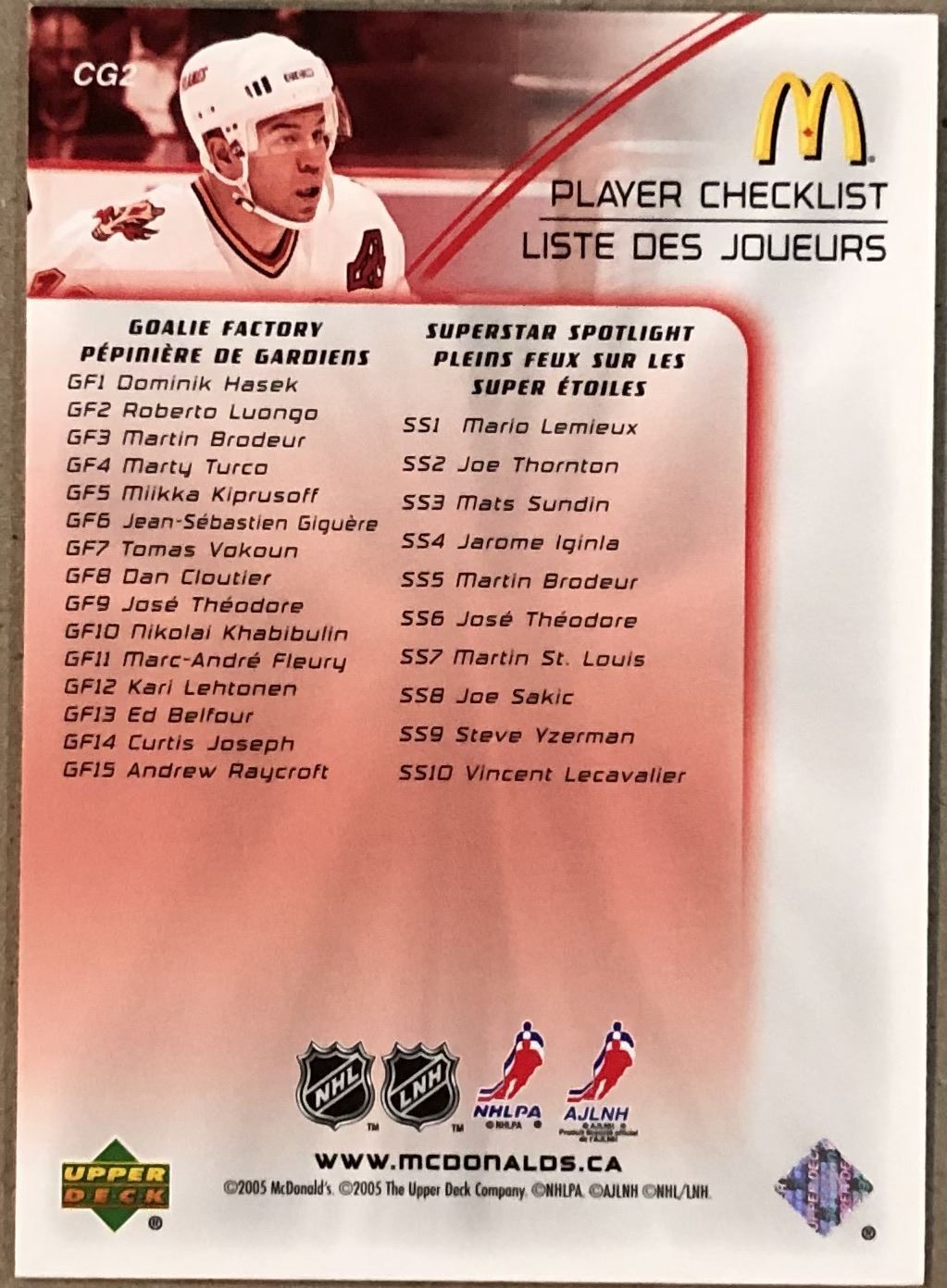 McDonald's #CG2 NHL, hockey, UD, regional, hall of fame