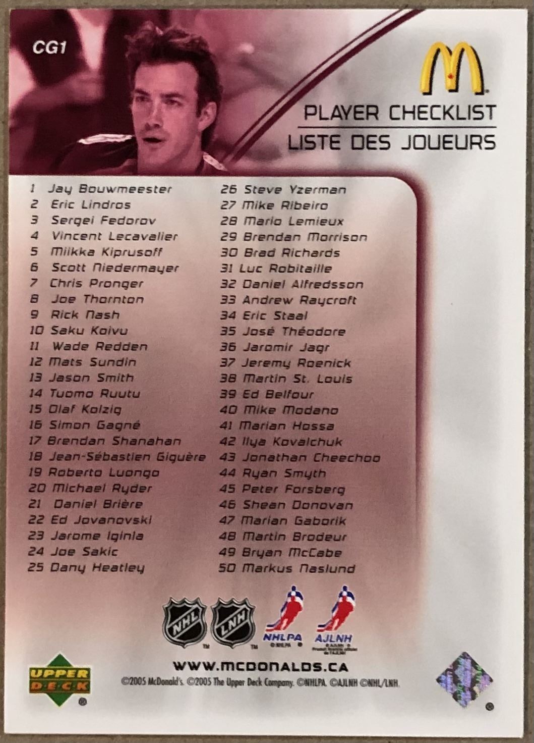 McDonald's #CG1 NHL, hockey, UD, regional, hall of fame